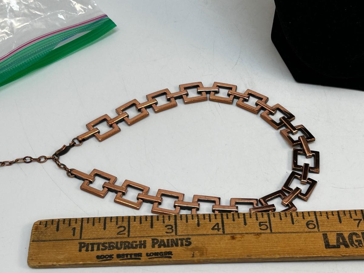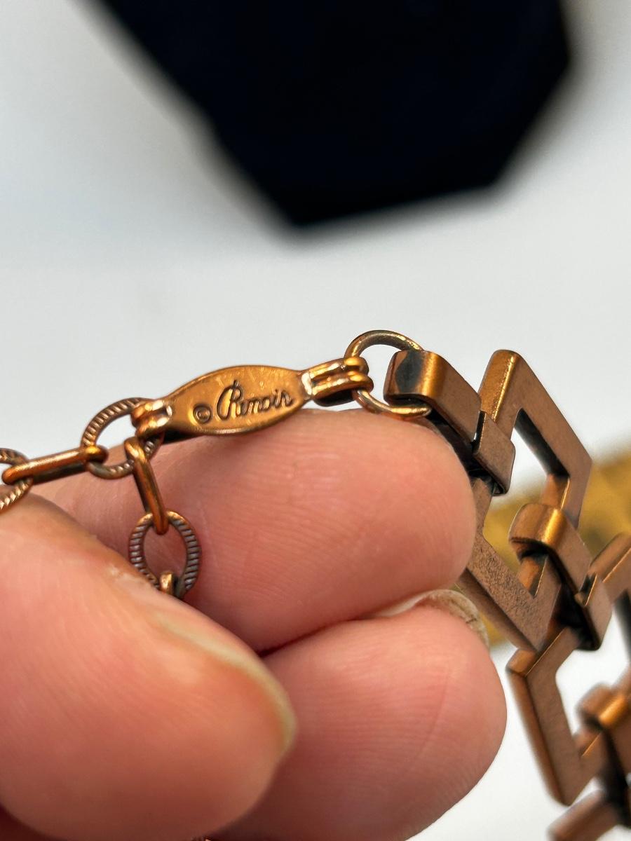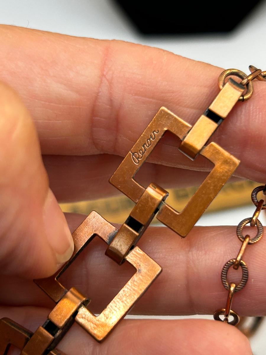 Vintage Renoir Copper Geometric Square Choker Style Necklace with Matching Clip Style Earrings