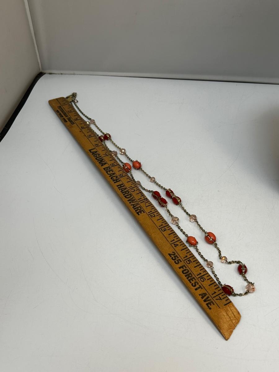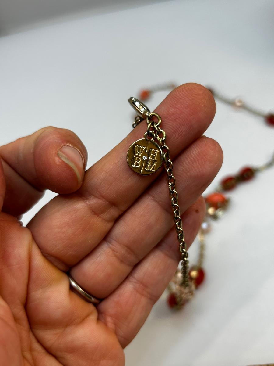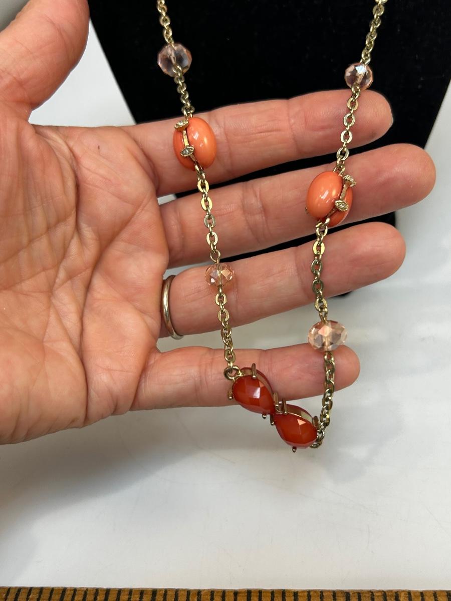 Silver Tone with Orange Beads Long Fashion Necklace White House Black Market