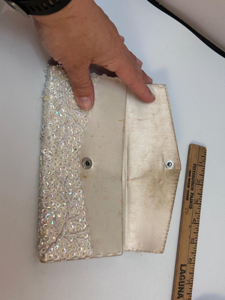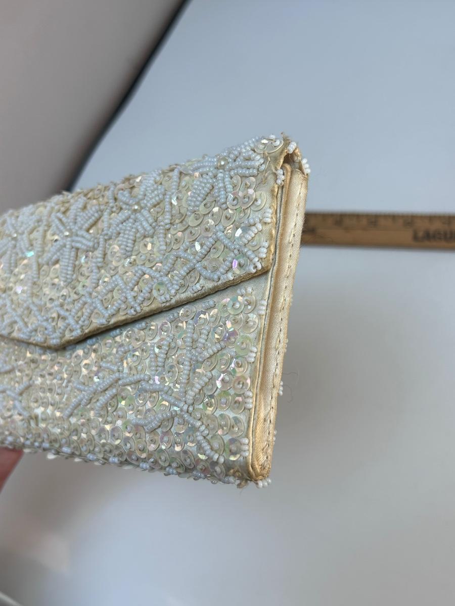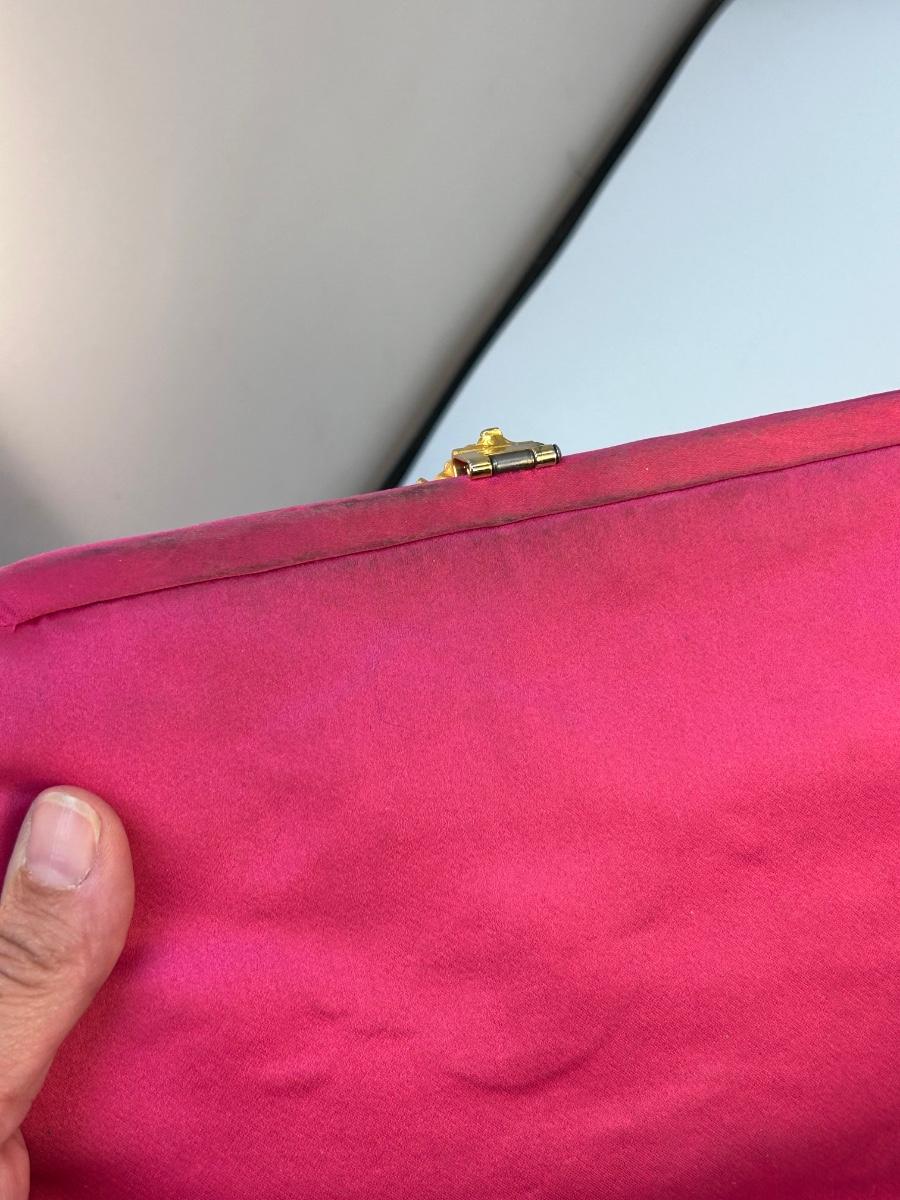Lot of Three Vintage Clutch Style Purse Handbags Beaded Sequined Hot Pink. In various states of condition. Some discolor maybe noticed from use. The champagne gold colored clutch is in the better condition of the three.