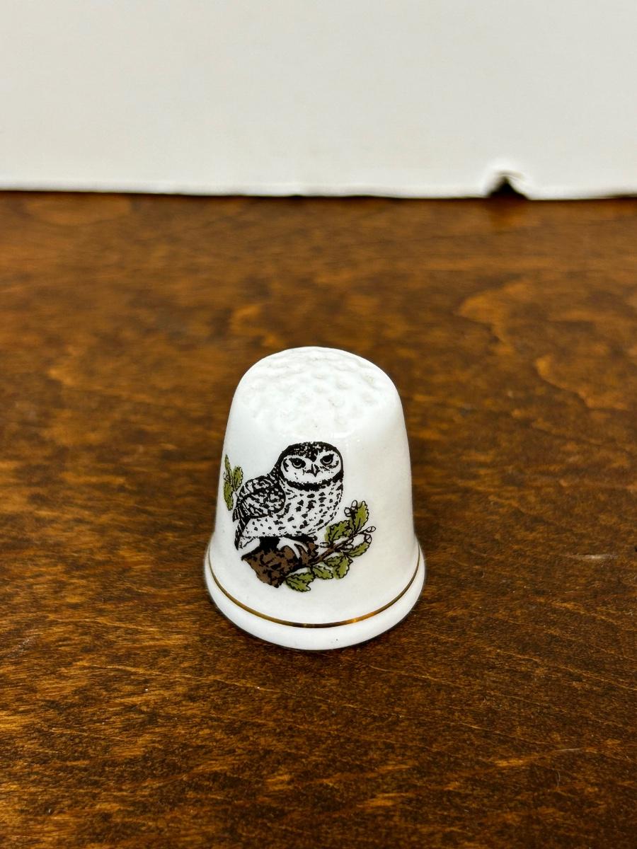 Vintage Snowy Owl Ashleydale Bone China Thimble