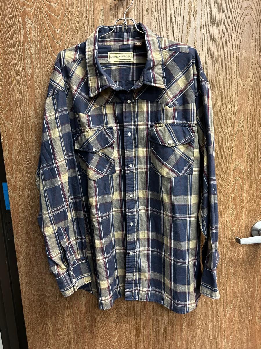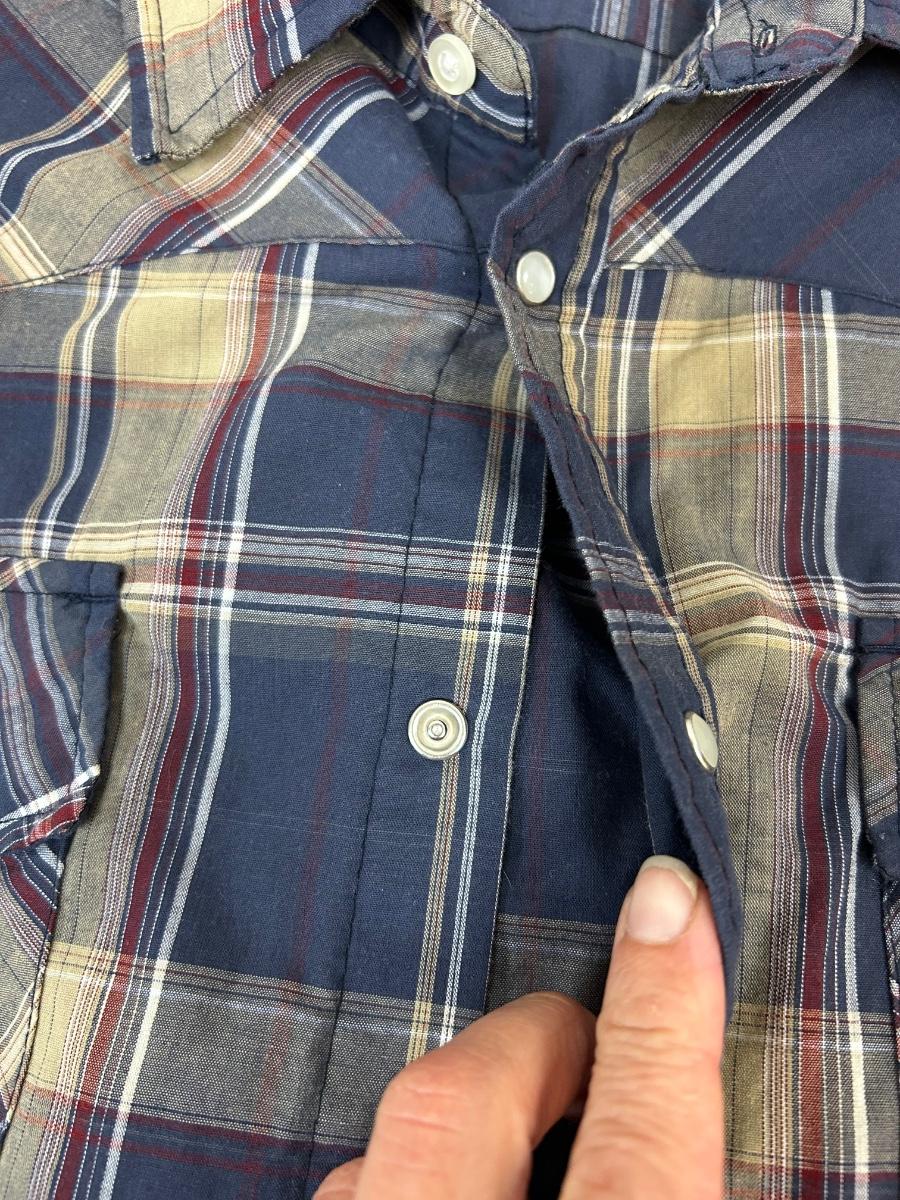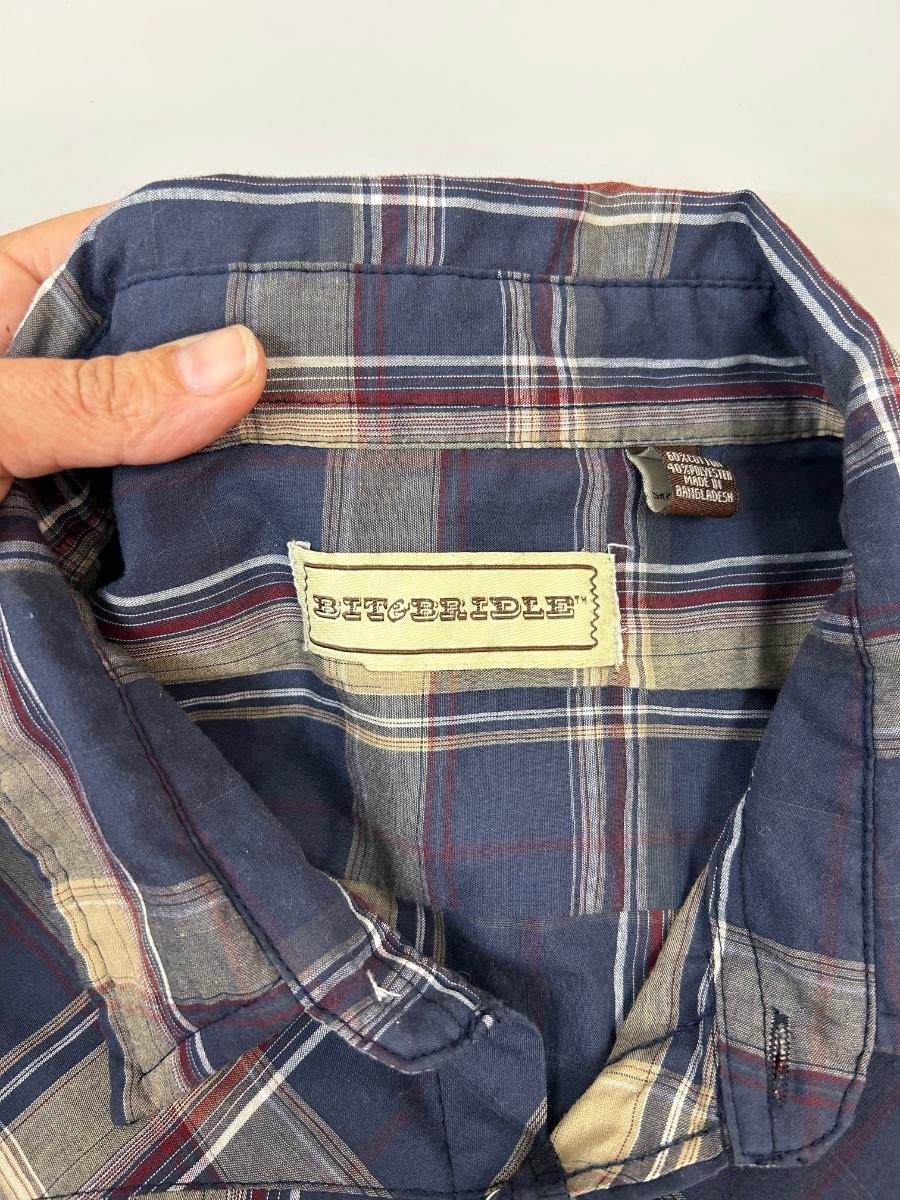 Retro Bit & Bridle Blue Plaid Snap Front Coun try Western Cowboy Shirt Size 4x. In good condition.
