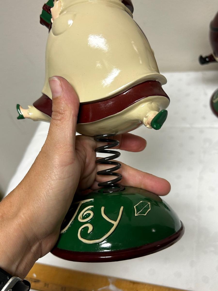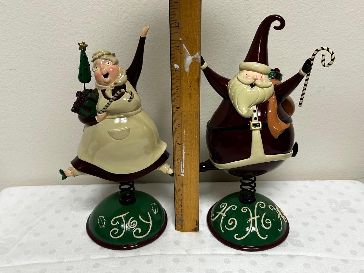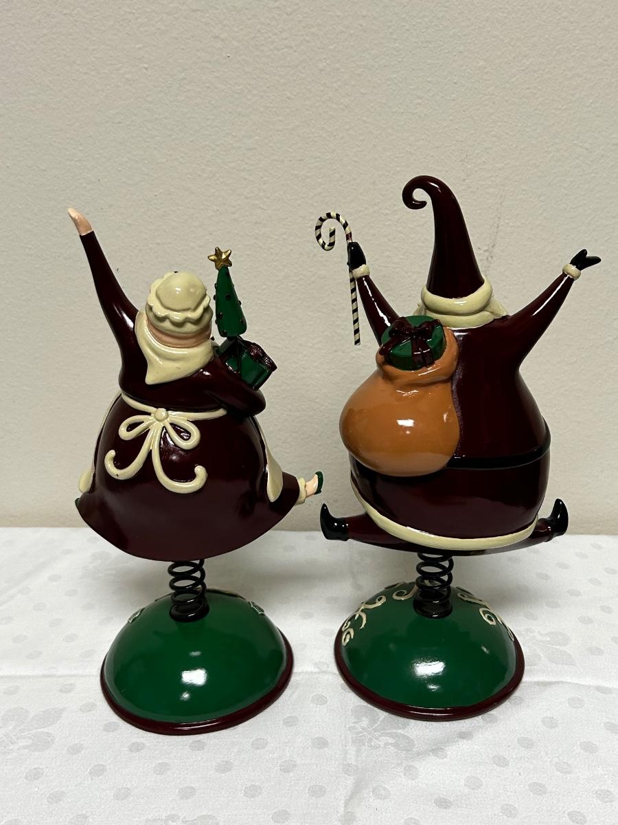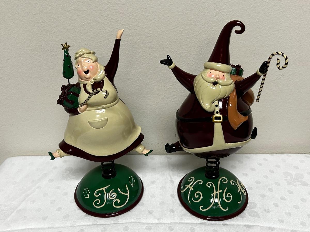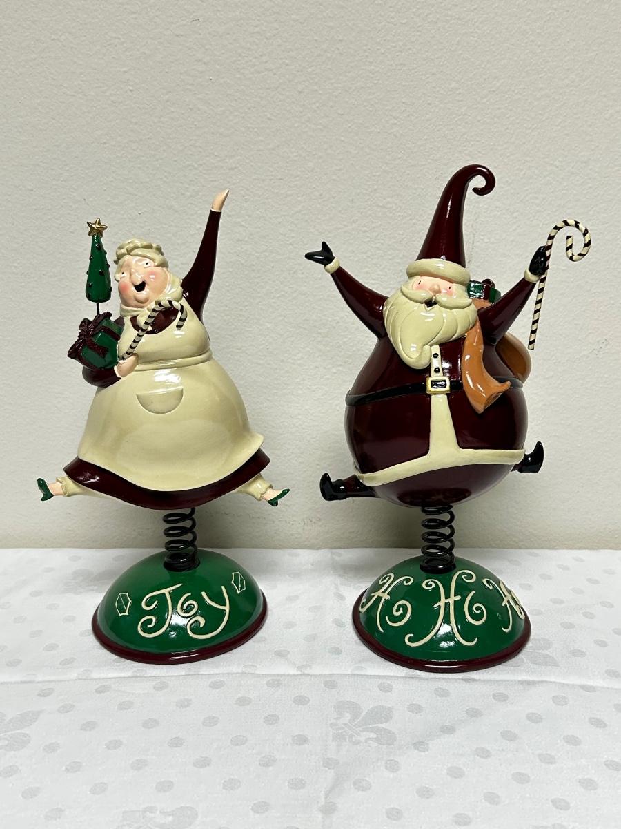 Pair of Spring Sitting Christmas Holiday Figurines Santa and Mrs Claus. In good condition. Heavy weighted bottom.