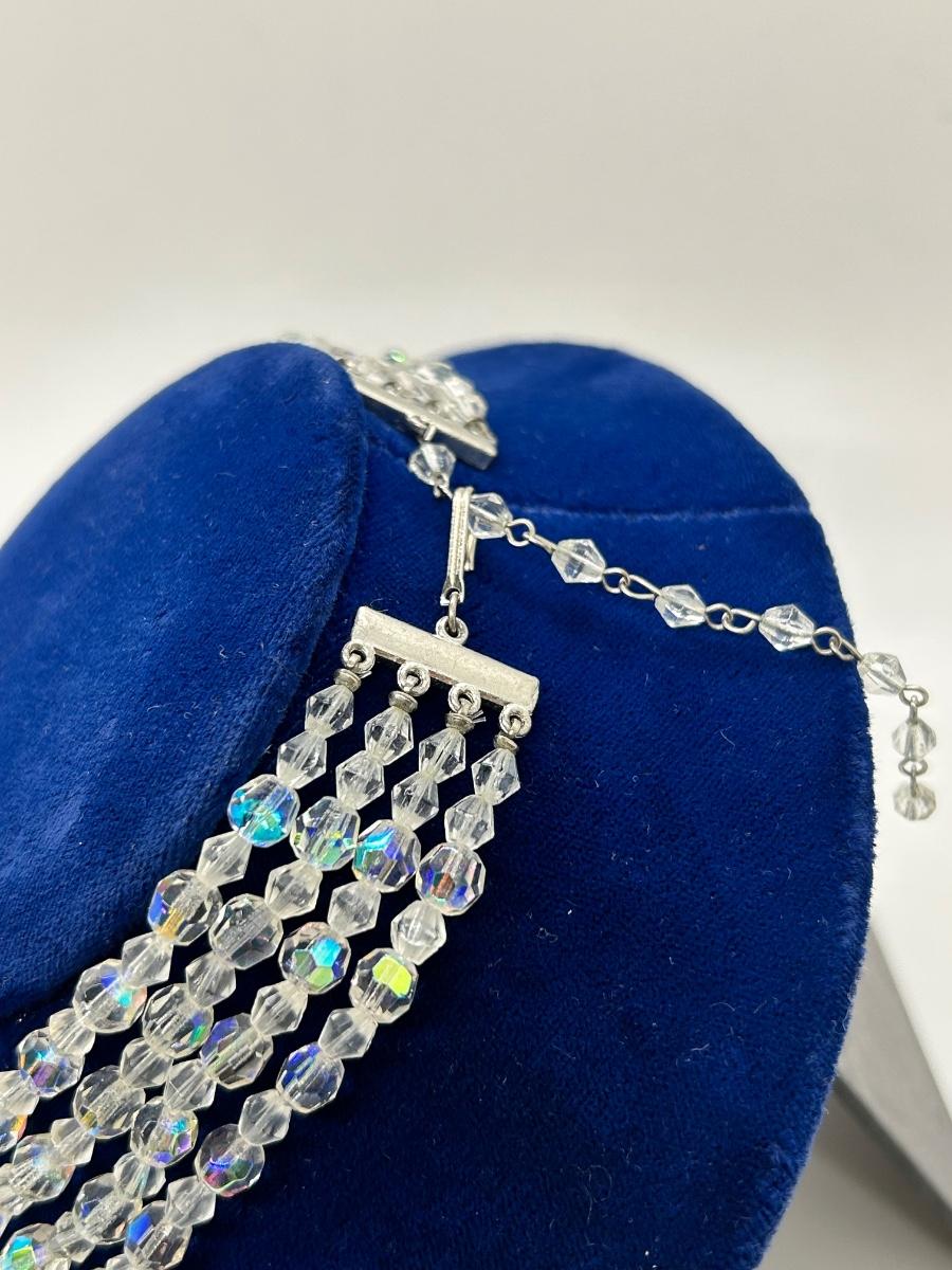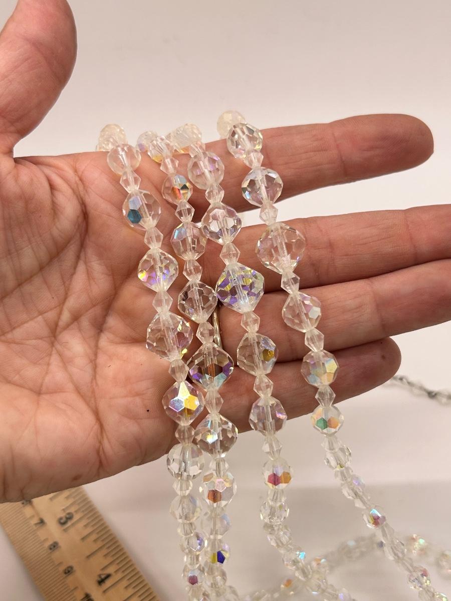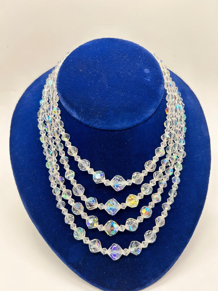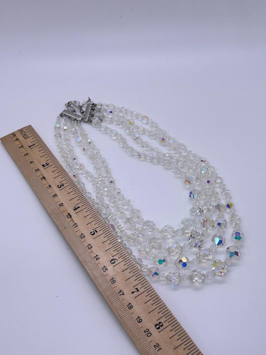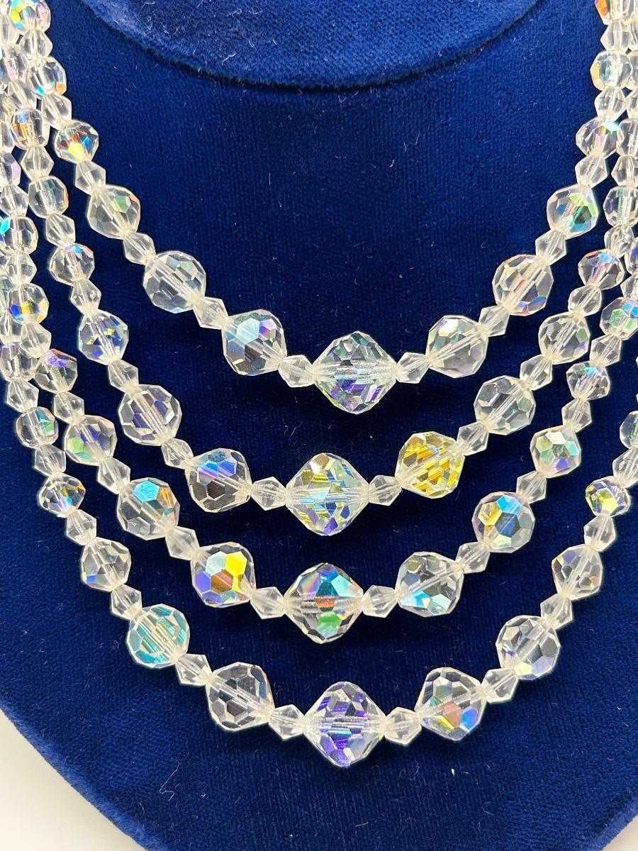 Vintage Four Strand Iridescent AB Prismatic Glass Bead Necklace