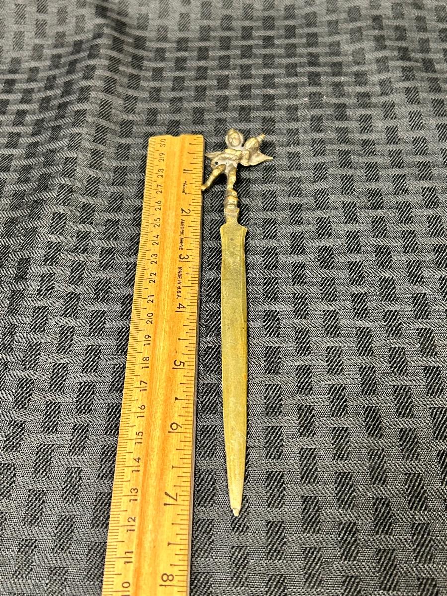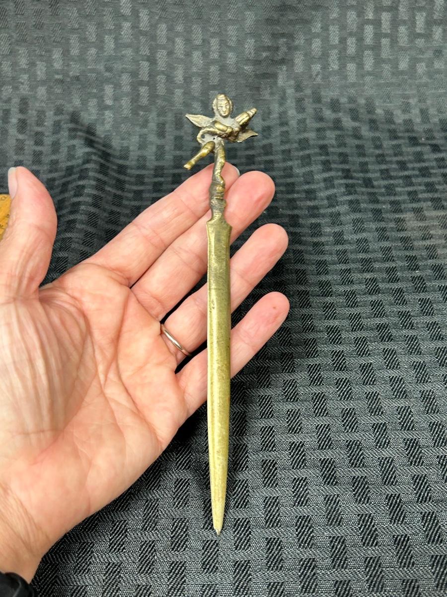 Vintage Brass Cherub Angel Topped Letter Opener. In good vintage condition. About 7" length.