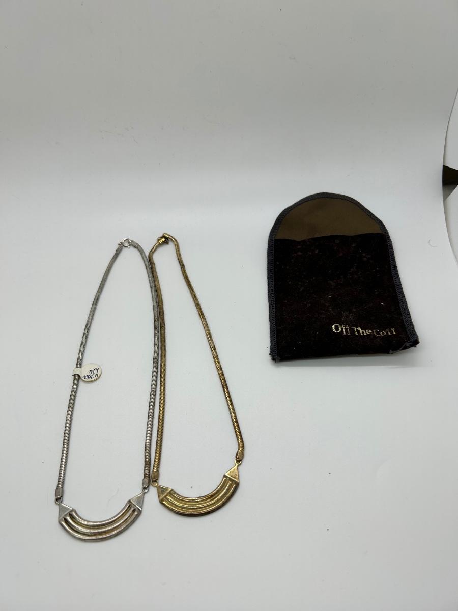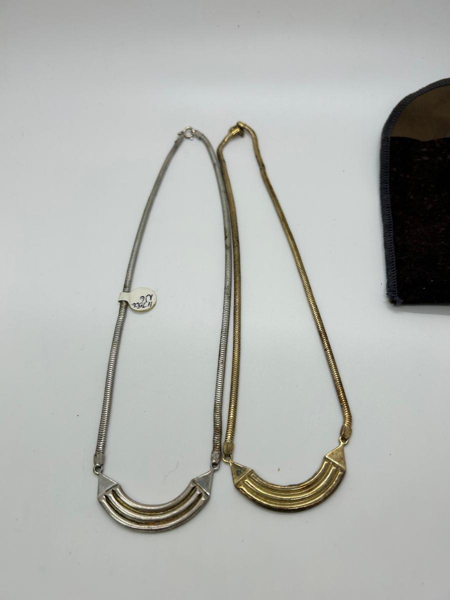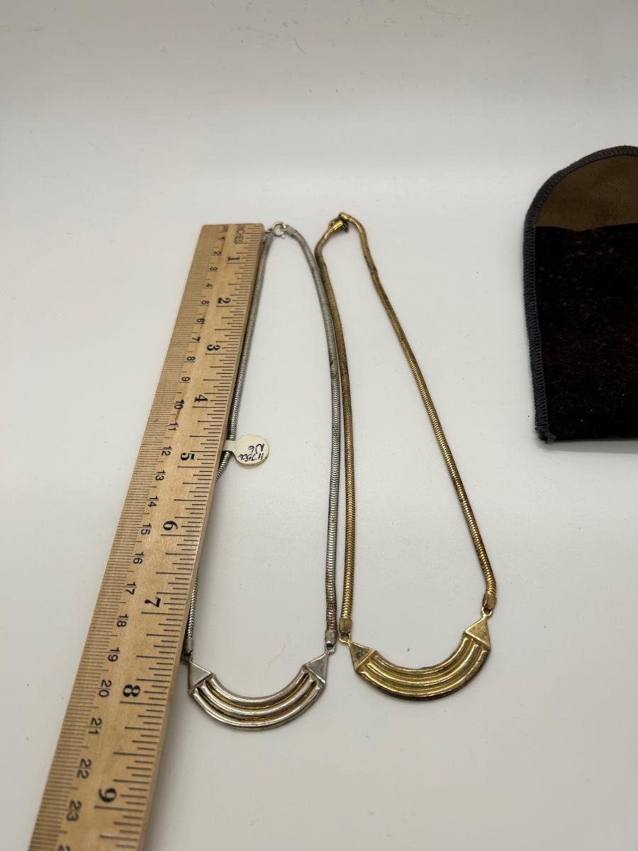 Pair of Matching Gold and Silver Tone Metal Choker Style Chain Necklaces