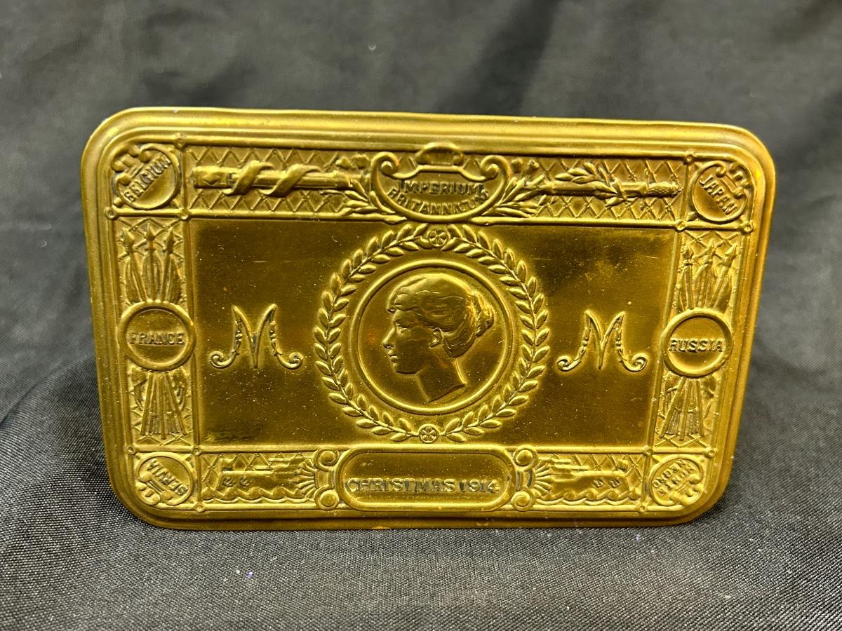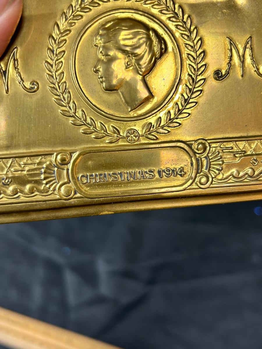 Vintage Embossed Brass Tone Collector Tin Christmas 1914