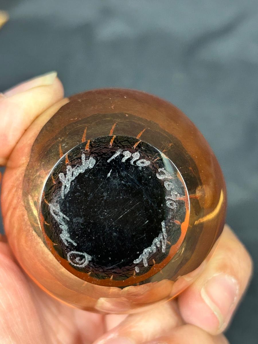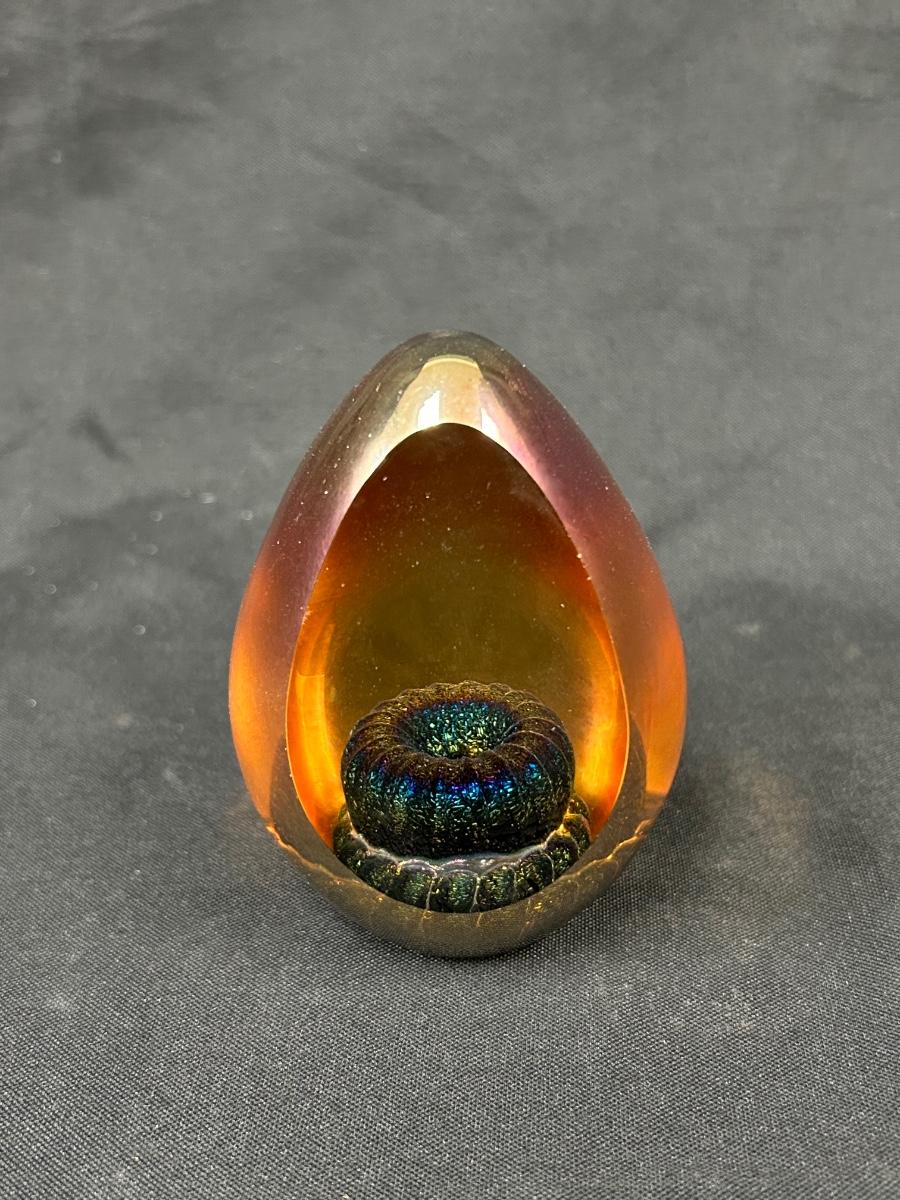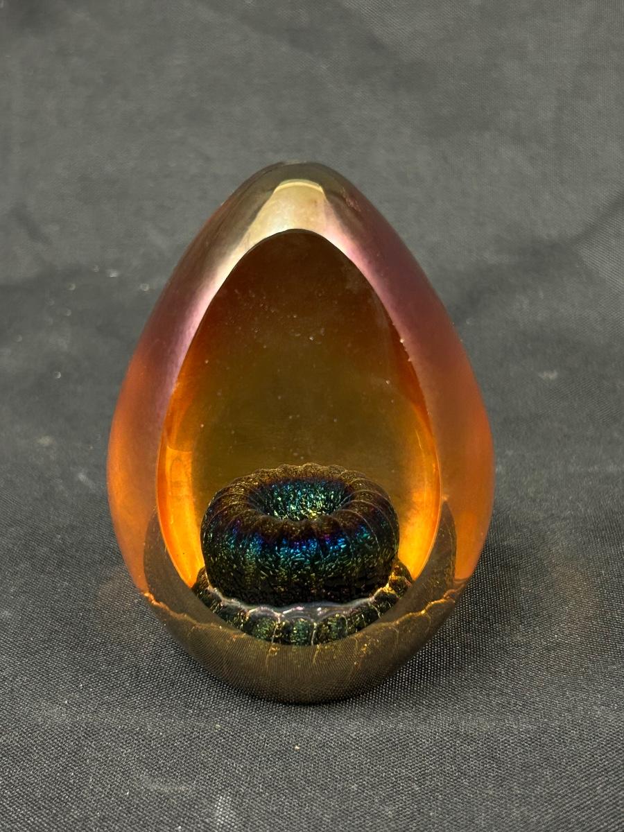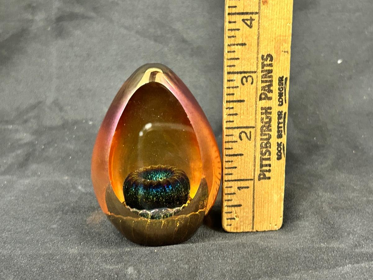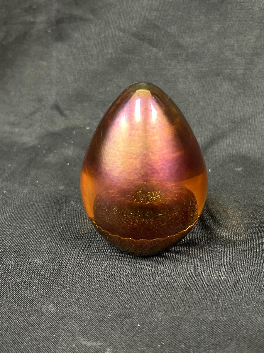 Iridescent Amber Blown Art Glass Egg Figurine Paperweight Signed