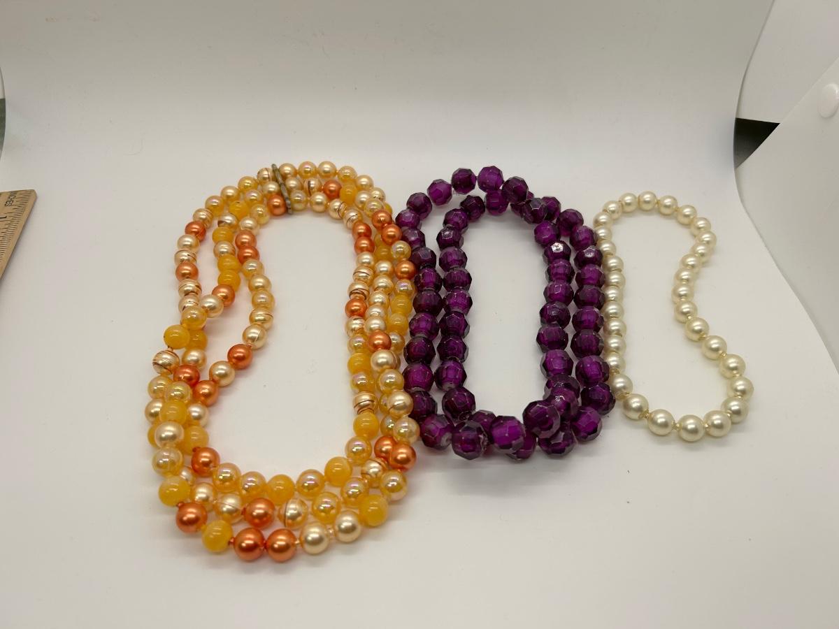Vintage Strands of Pop Together Plastic Fashion Beads Necklaces Bracelets Crafts. Beads fit together with male/female ends. Wear as long or short as desired. Easy on/off.