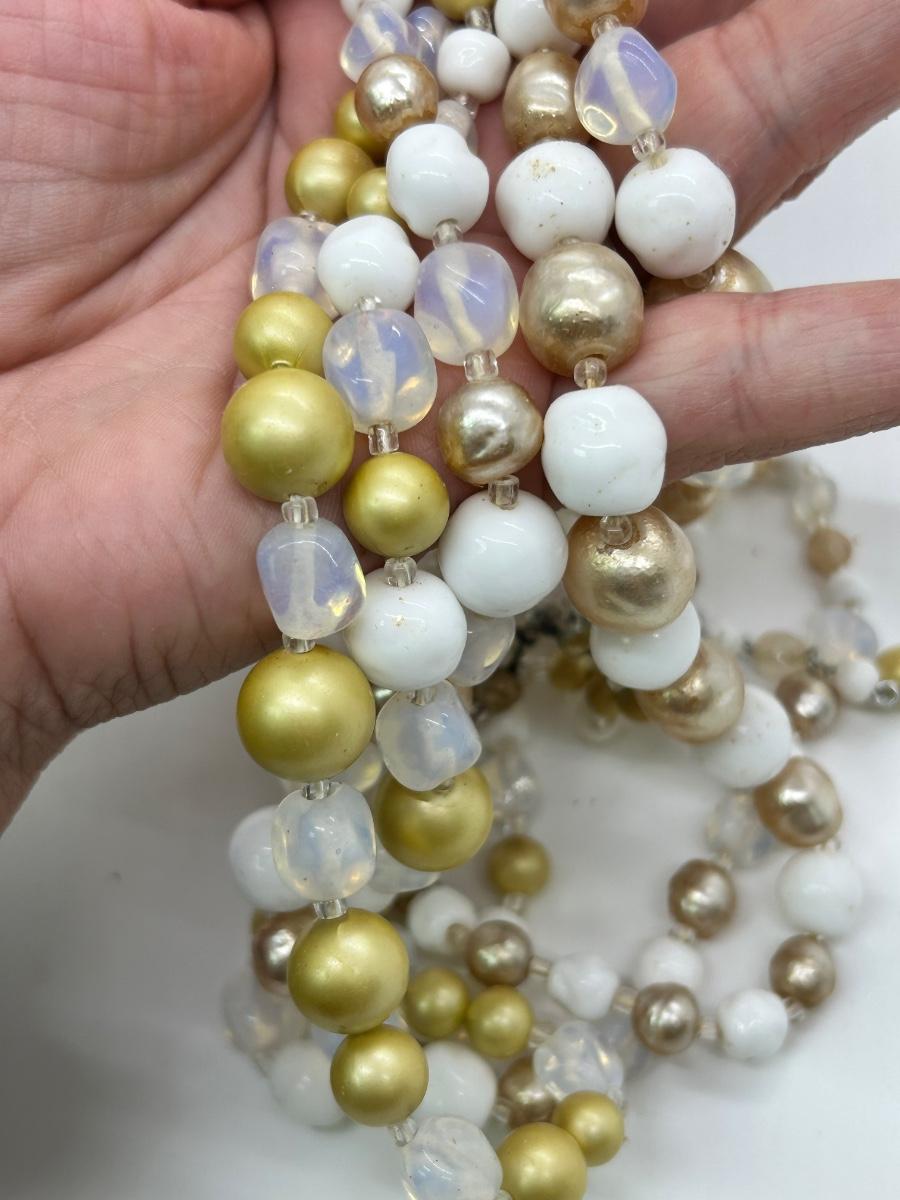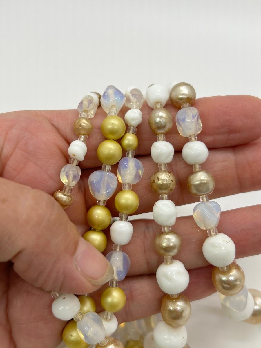 Vintage Multistrand Choker Style Beaded Necklace Faux Pearl and Milk Glass Beads
