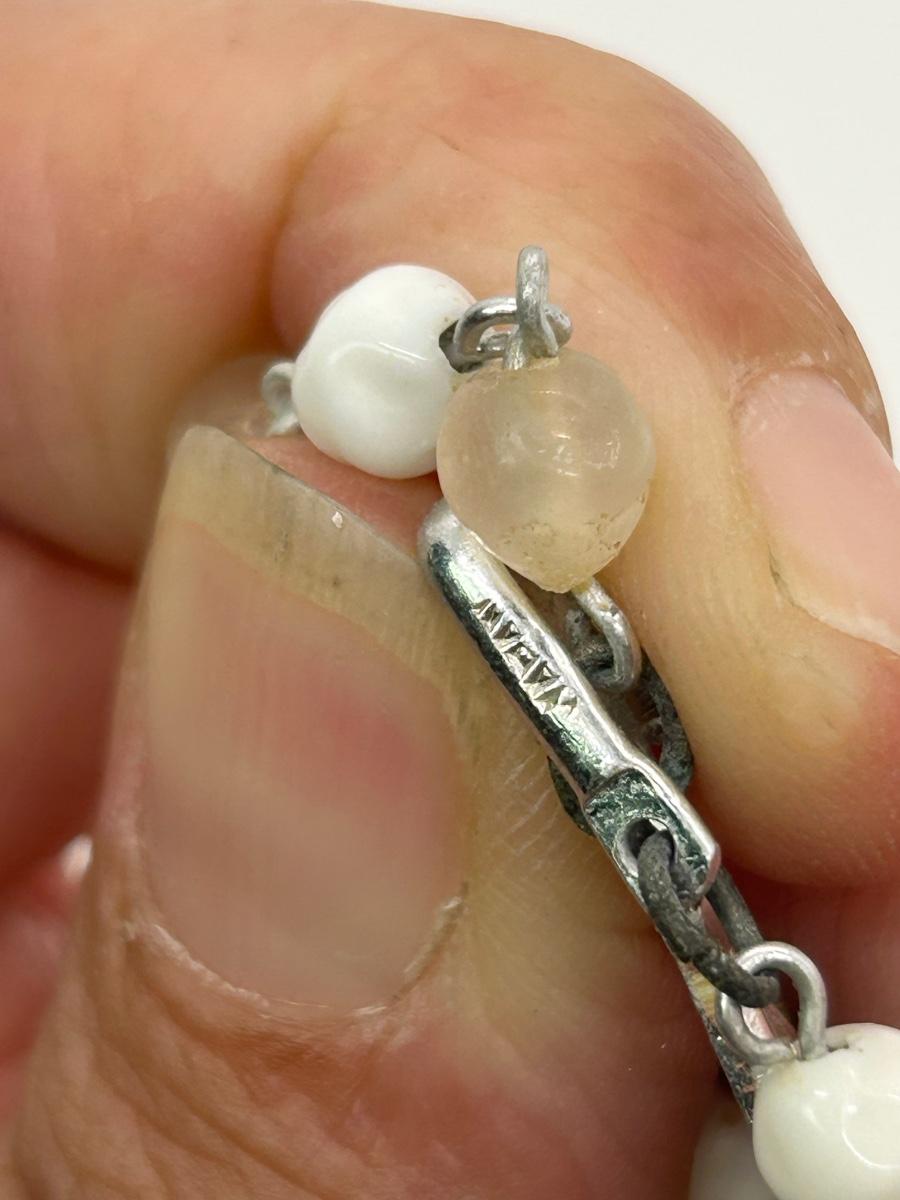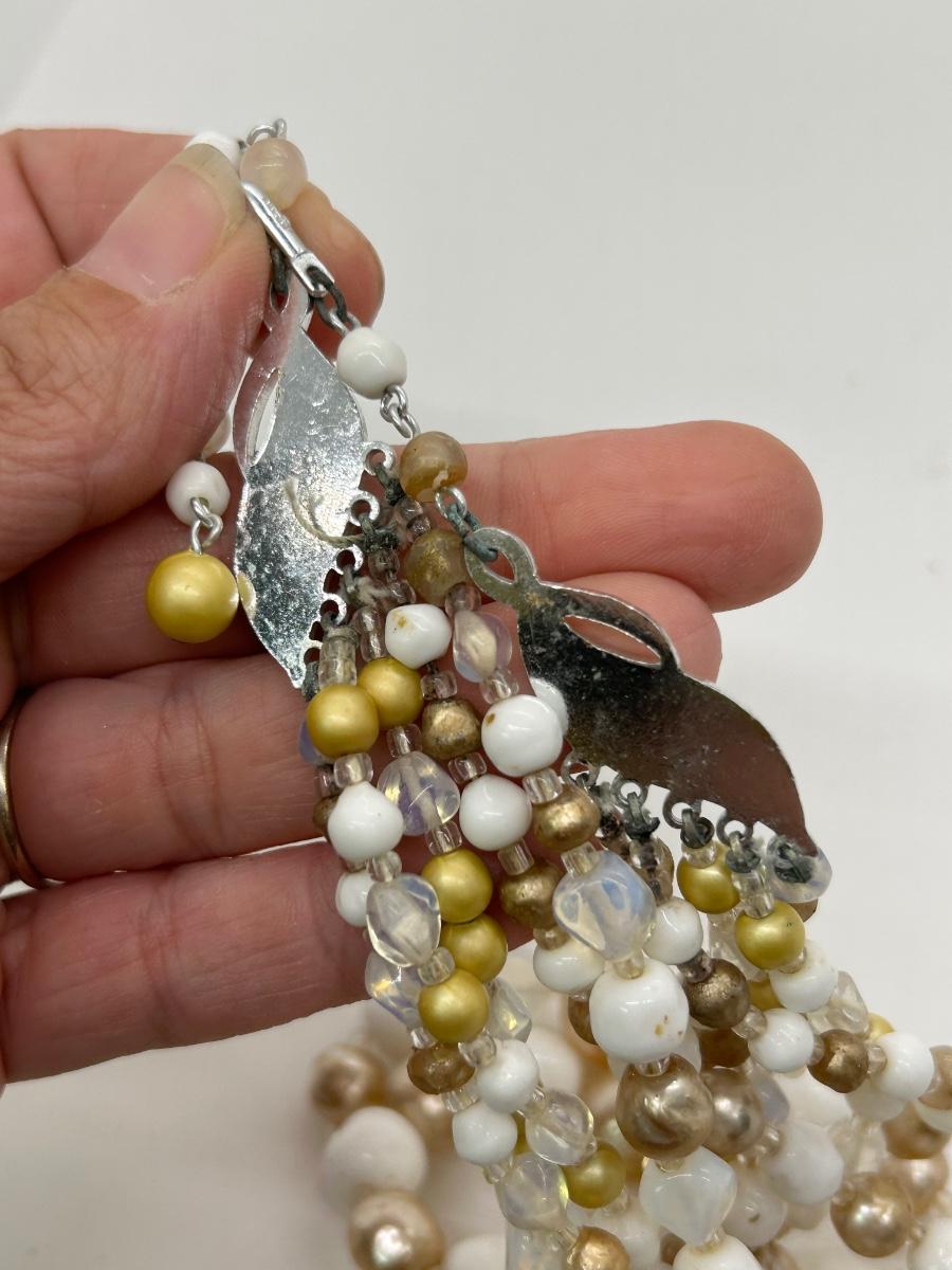 Vintage Multistrand Choker Style Beaded Necklace Faux Pearl and Milk Glass Beads. In good vintage condition.