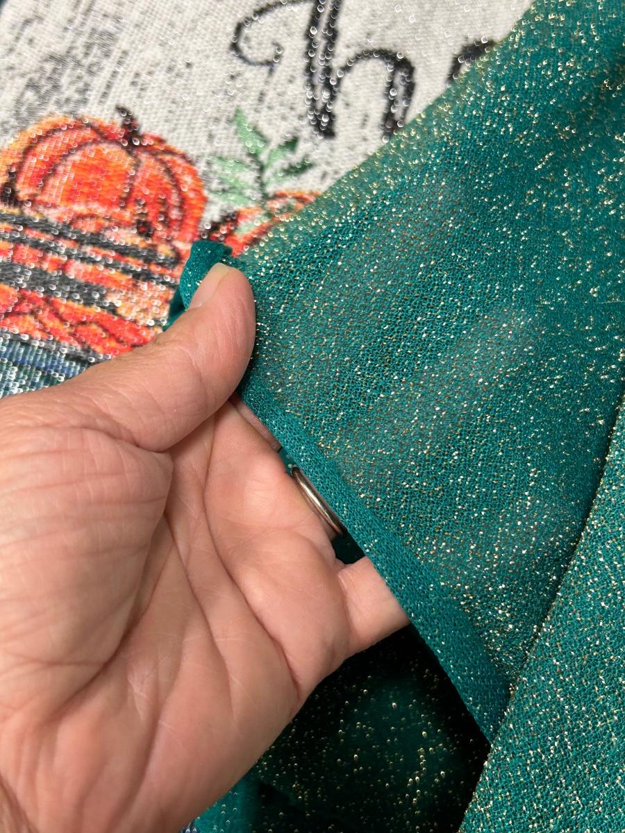 Metallic Thread Woven Autumn Placemats and Green Gold Table Cover