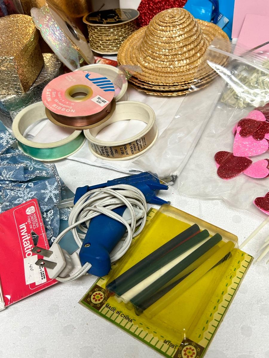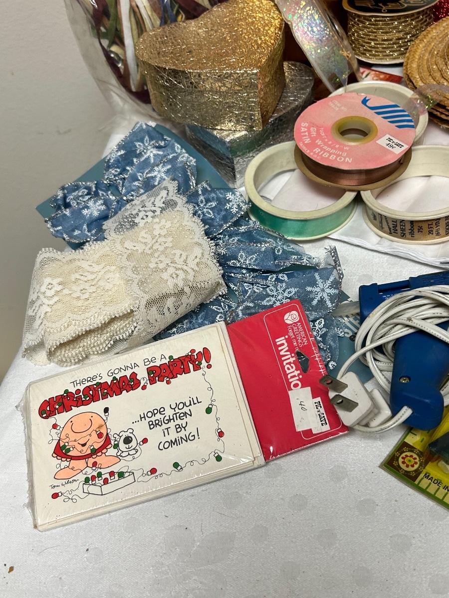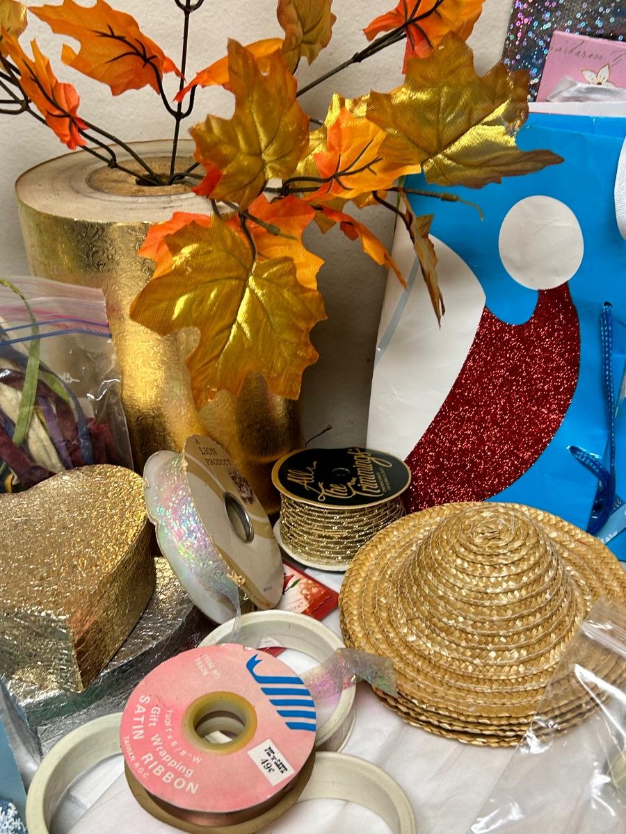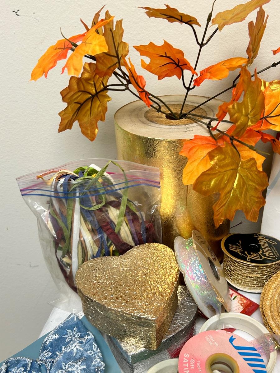 Mixed Lot of Crafting Supplies and Gift Packaging. Ribbon, gift bags random craft supplies and more.