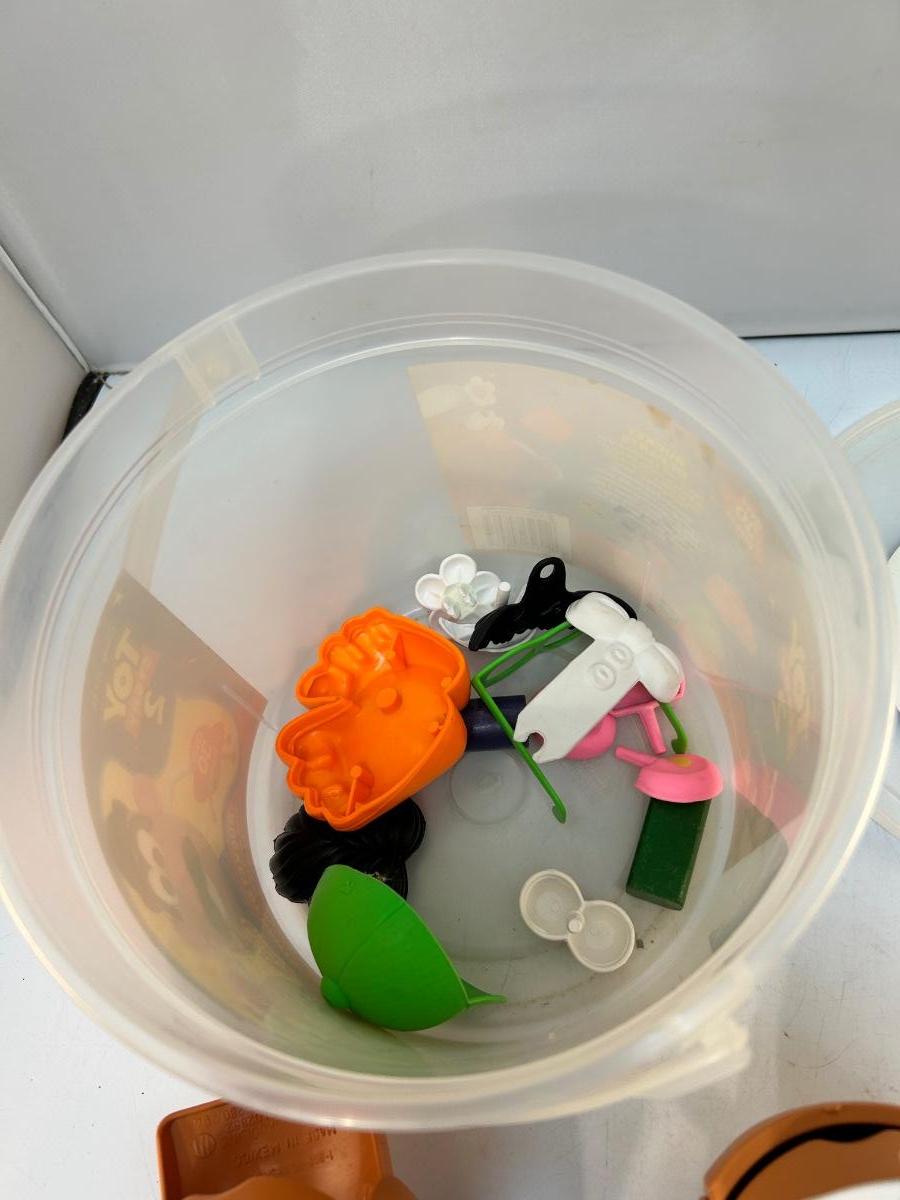 Toy Story 2 Mr. and Mrs. Potato Head Bucket of Parts Children's Kids Toy. In good played with condition. Picture with parts inside is the left-over parts after putting together Mr. and Mrs. Potato Head.