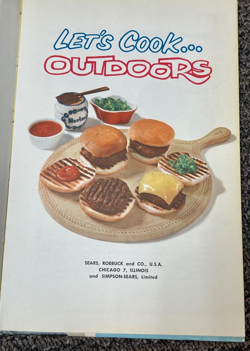 Vintage Midcentury Let's Cook.. Outdoors BBQ Grilling Cookbook 1961. In good vintage condition. From Sears, Roebuck, and Co.