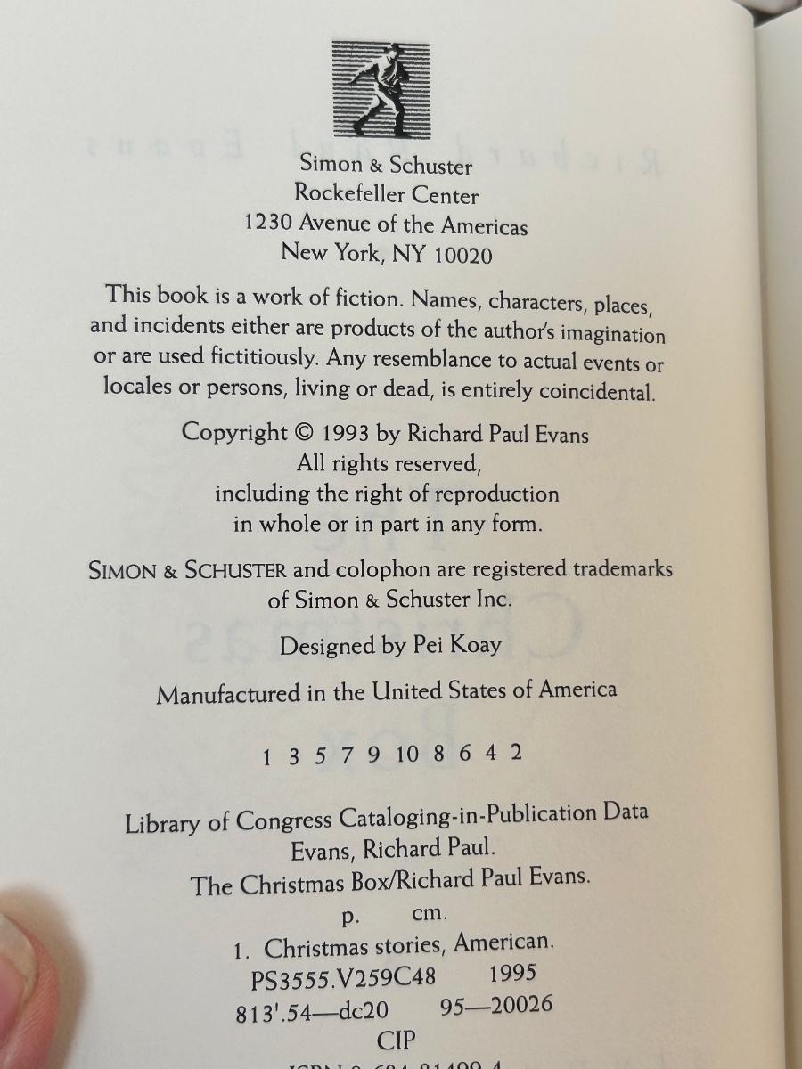 Pair of Small Holiday Themed Books The Christmas Box & A Christmas Memory. Both were given as gifts and inscribed inside the cover. Good condition.