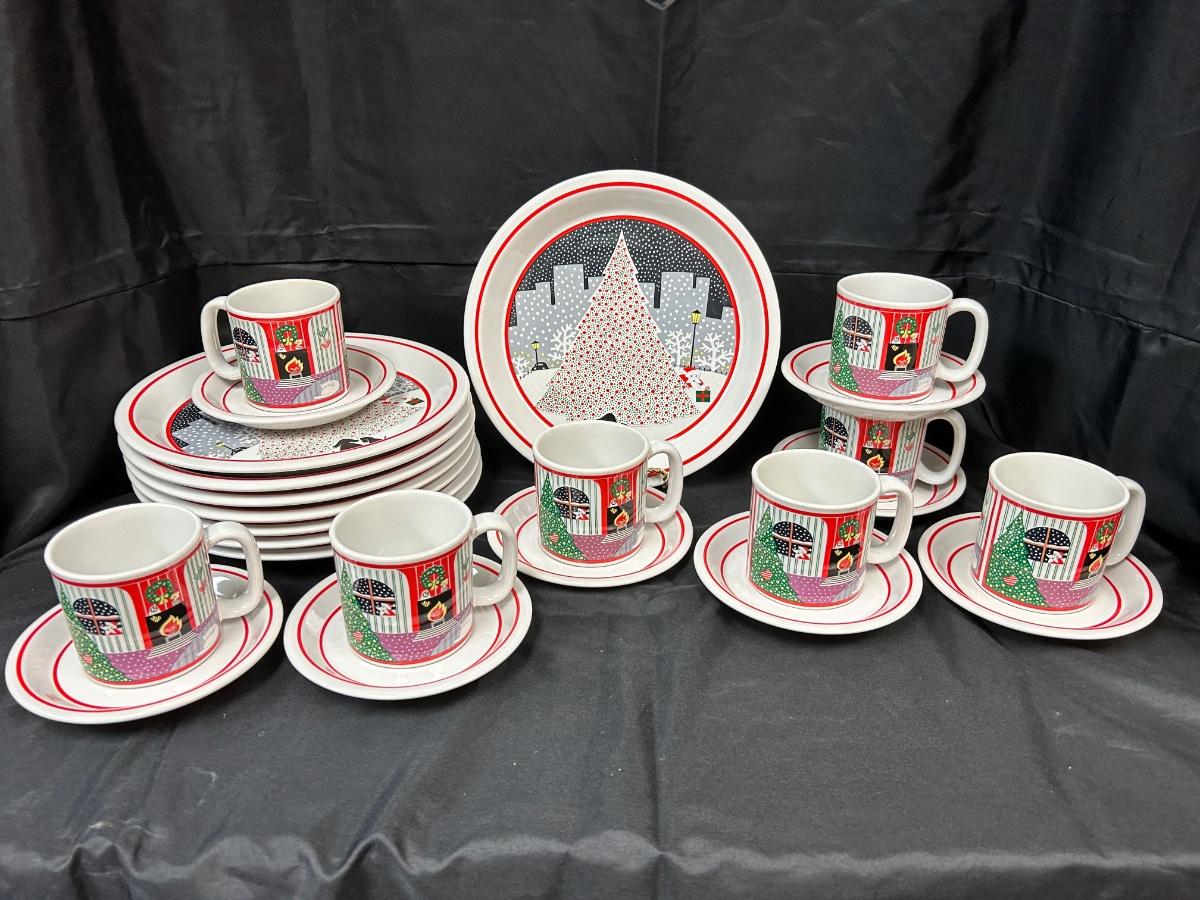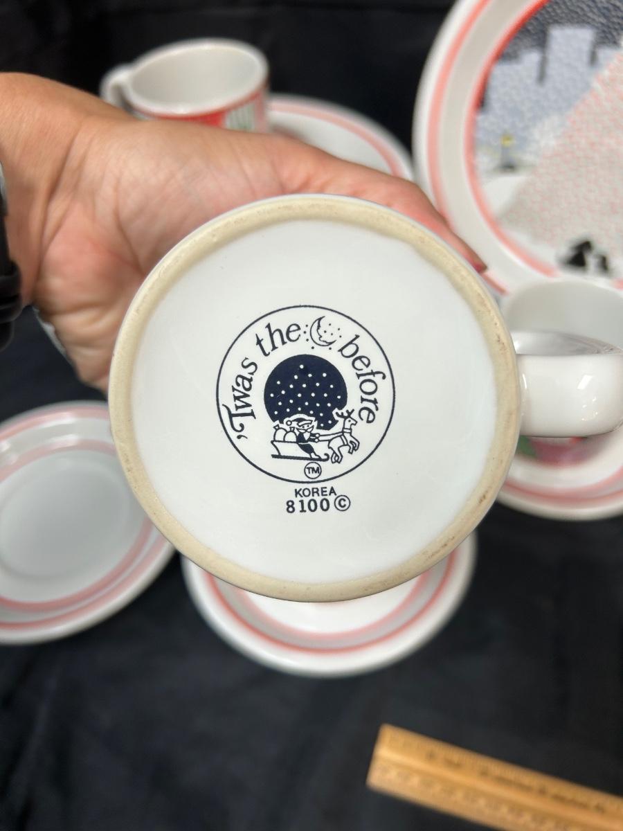Vintage Retro Twas the Night Before Christmas Holiday Dishware Korea Plates Cups with Saucers. in good condition. Set of 8 plates and 8 cups with saucers.
