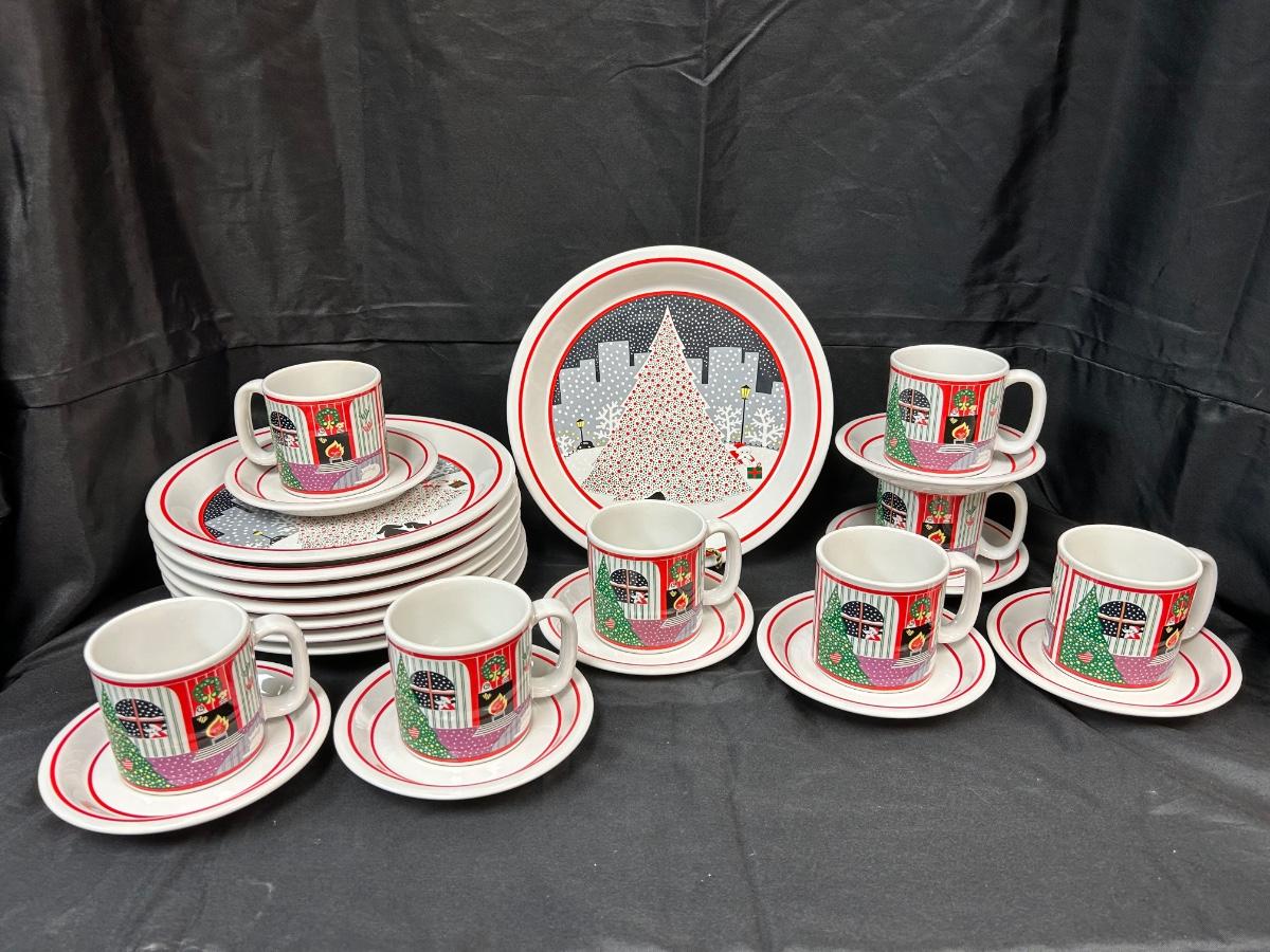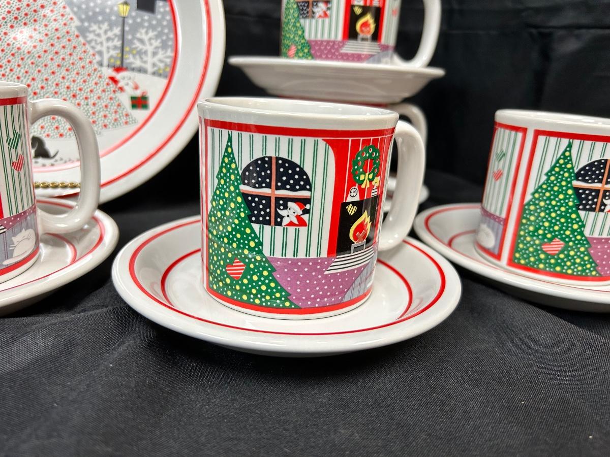 Vintage Retro Twas the Night Before Christmas Holiday Dishware Korea Plates Cups with Saucers