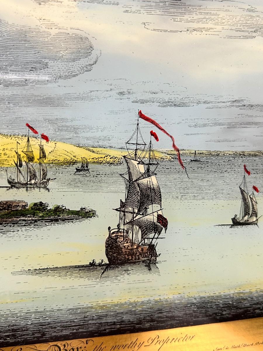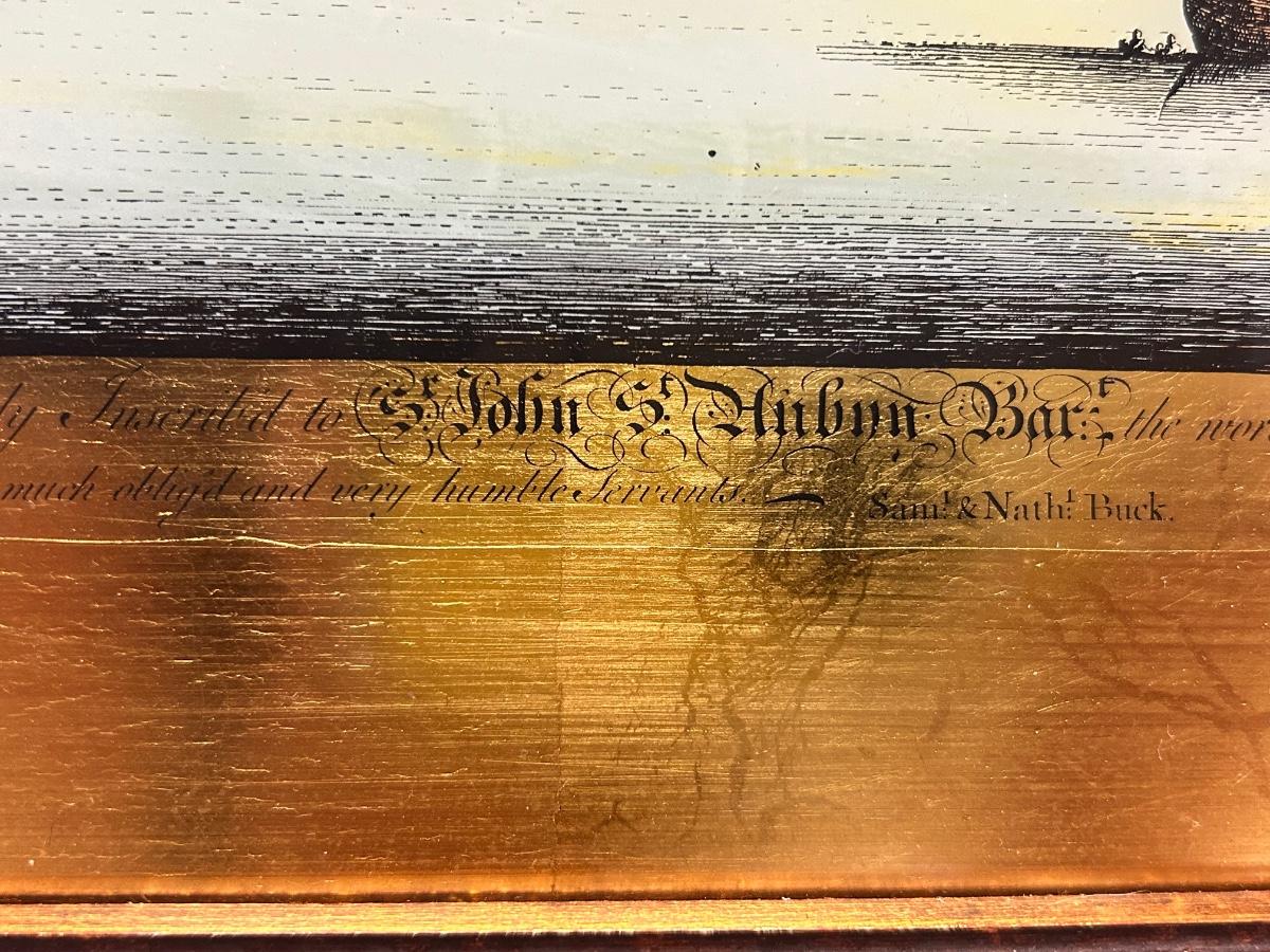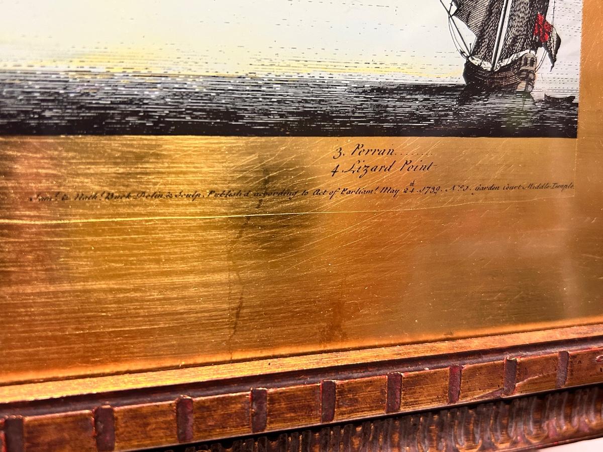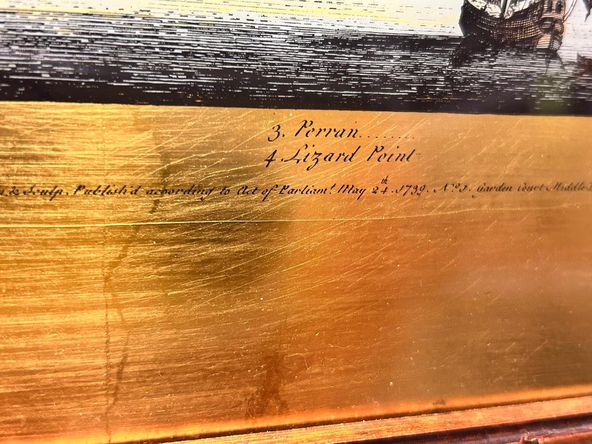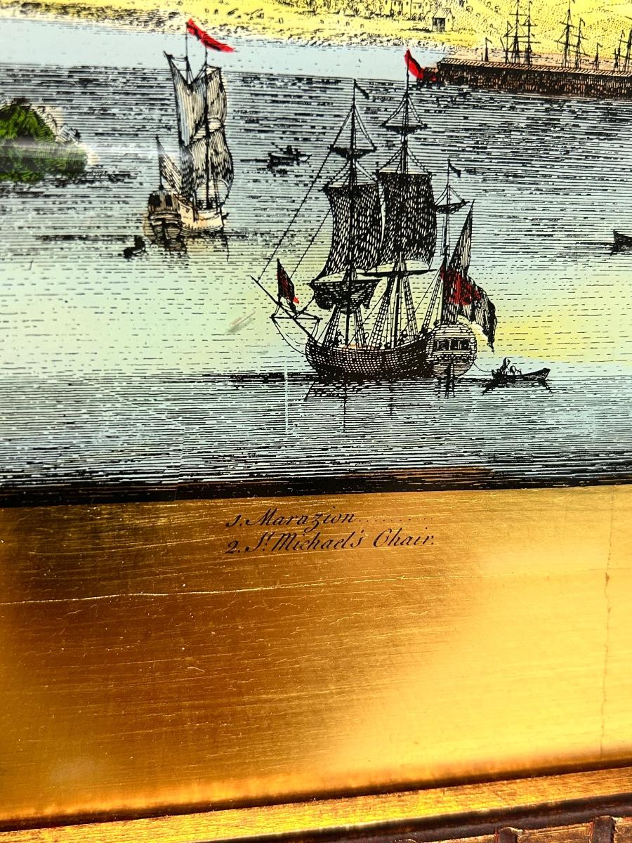 Antique Vintage Gold Gilt Edge Reverse Painted Colorized Etching St. Michael's Mount Cornwall