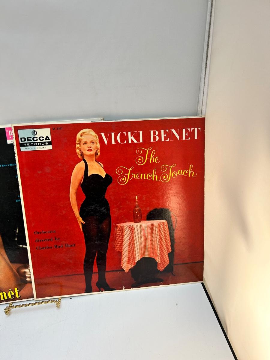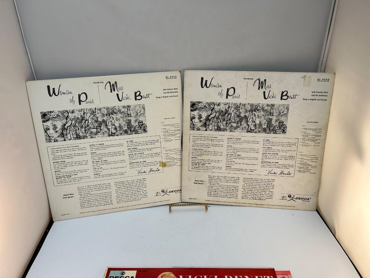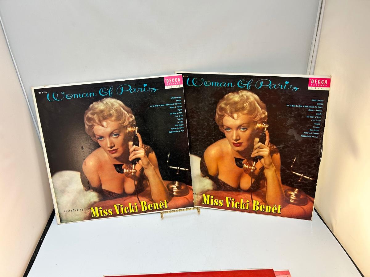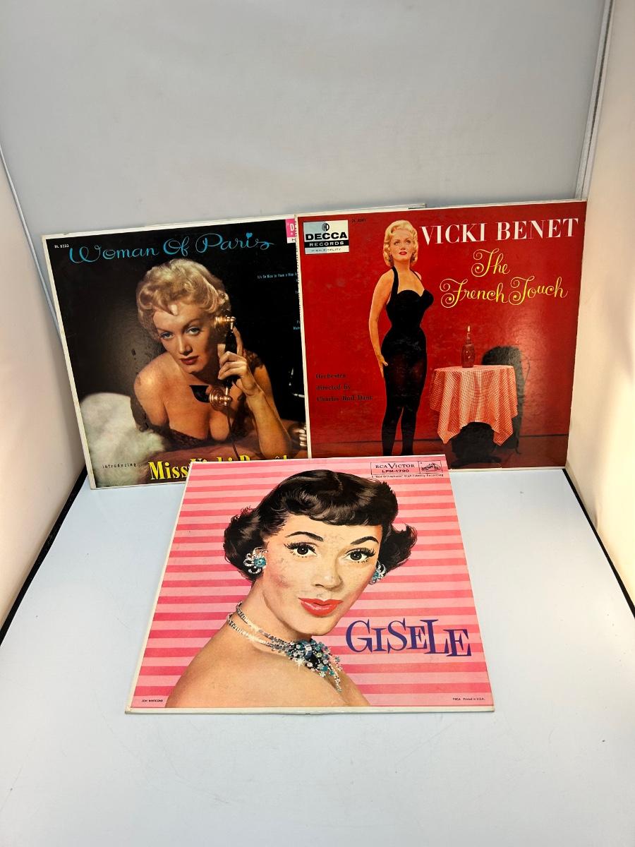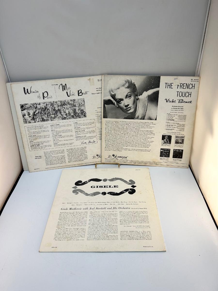 Vintage Female Artist Vinyl Records Miss Vicki Benet & Giselle MacKenzie. Lot includes four albums, there is two Woman of Paris albums. In collectible condition, unchecked for playability.