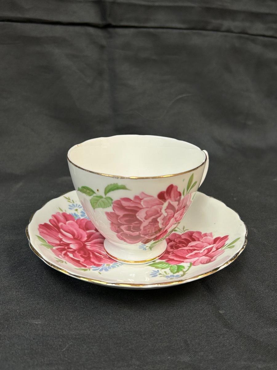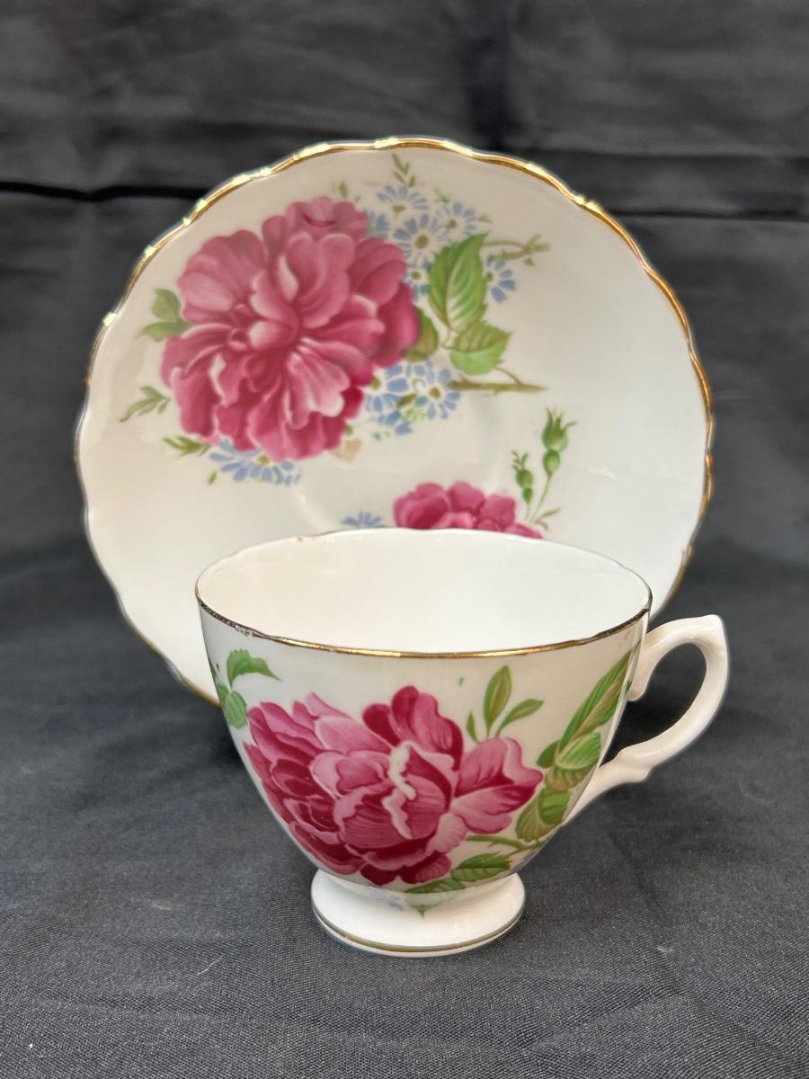 Vintage Royal Imperial Bone China Pink Floral Teacup and Saucer