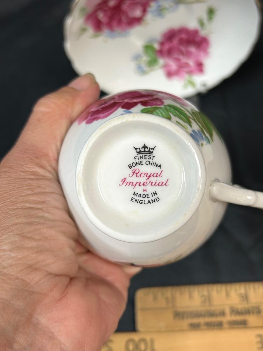 Vintage Royal Imperial Bone China Pink Floral Teacup and Saucer. In good vintage condition. No damage noticed.
