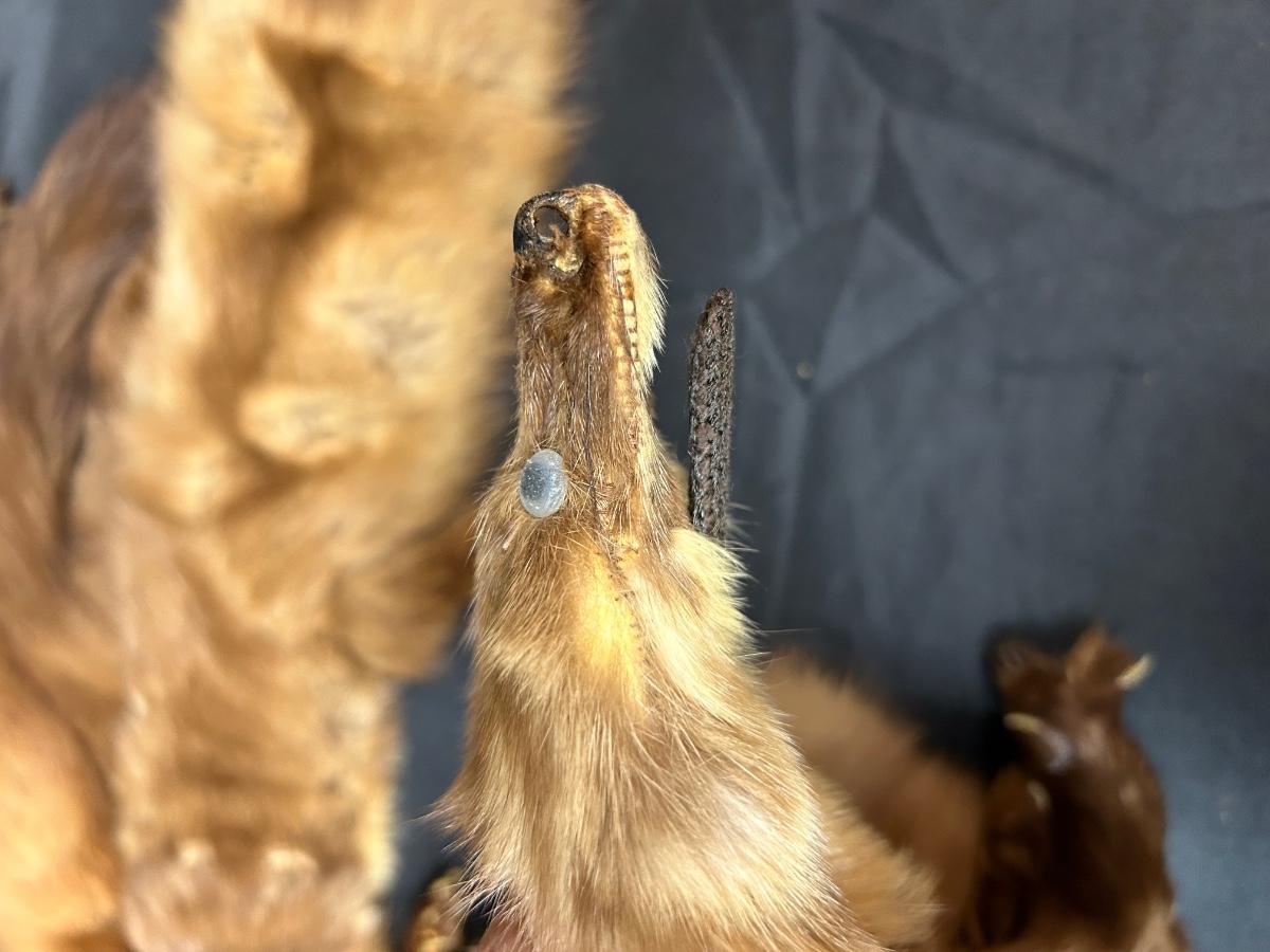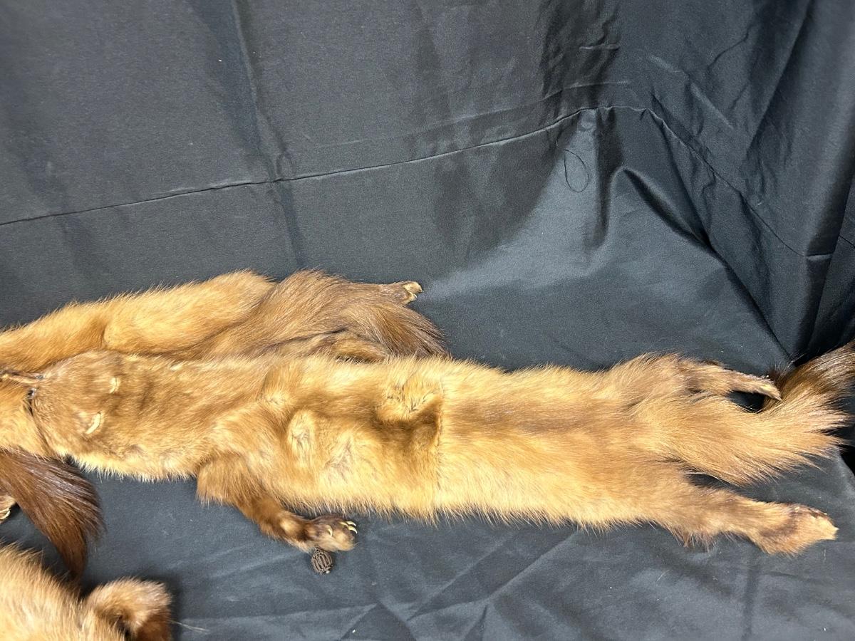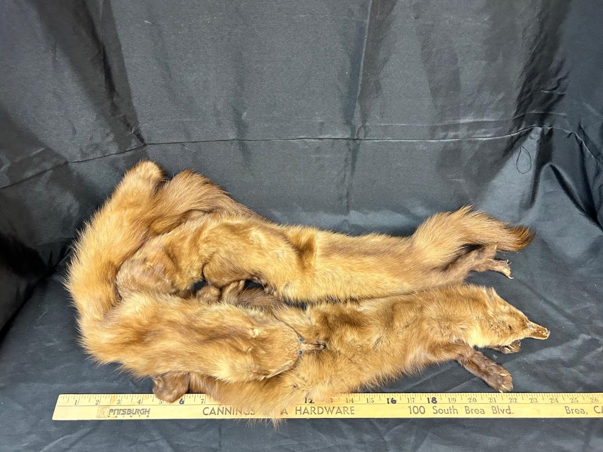 Vintage Real Full Pelt Mink Shoulder Neck Wrap Scarf. Three full mink pelts with heads, limbs, claws, and tails. In good vintage condition. Stitched together simply, could probably be taken apart for repurpose fairly easy. See photos.