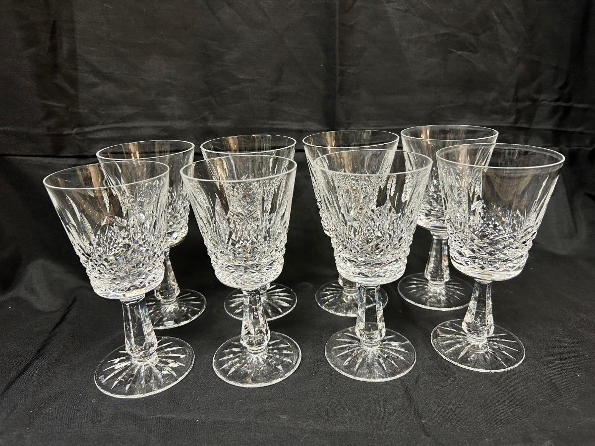 Vintage Waterford Crystal Colleen Pattern Water Wine Goblet Drink Glass Stemware Large Set of 8. In very good condition, no chips on pieces. These are about 7" size.