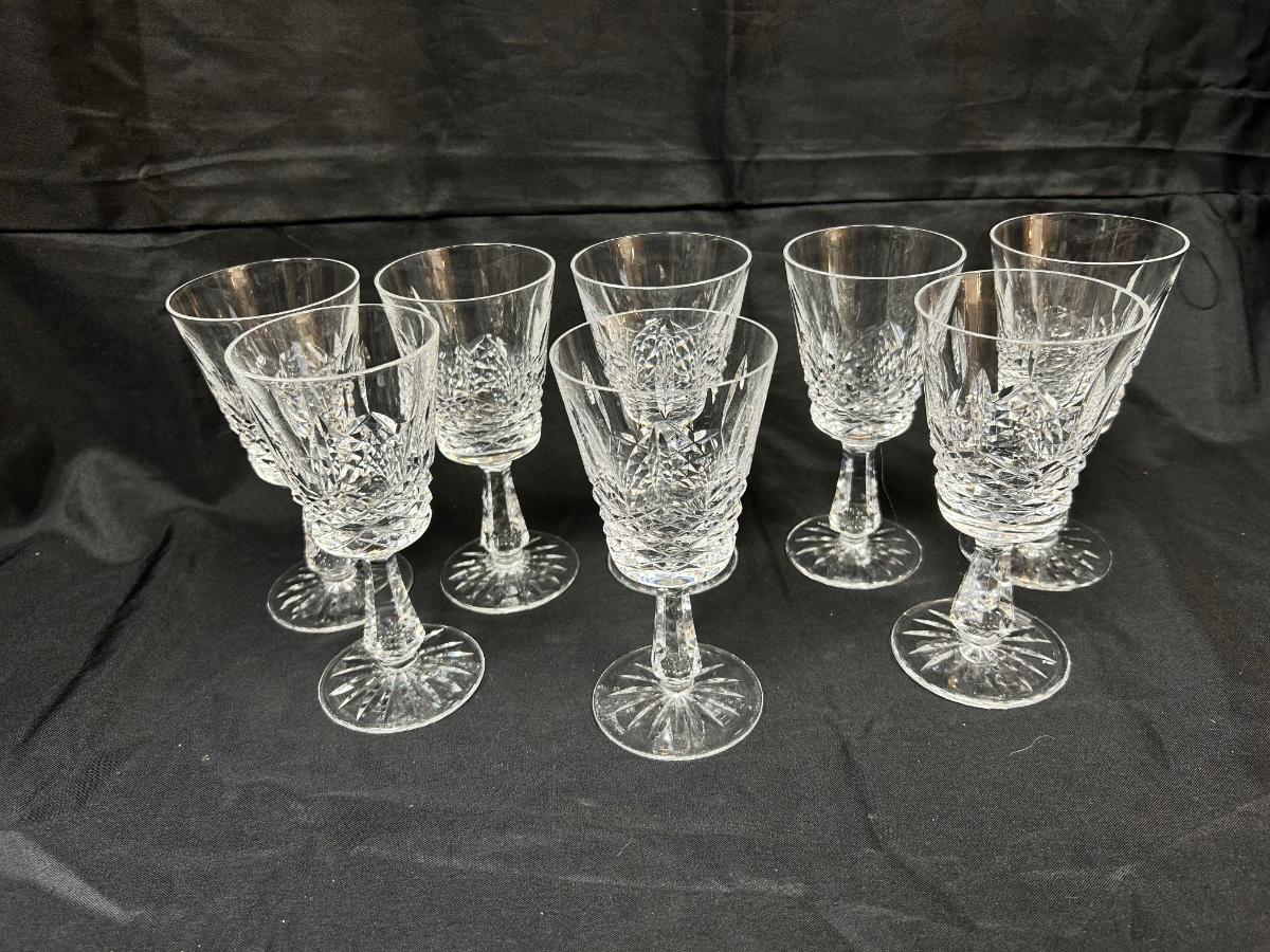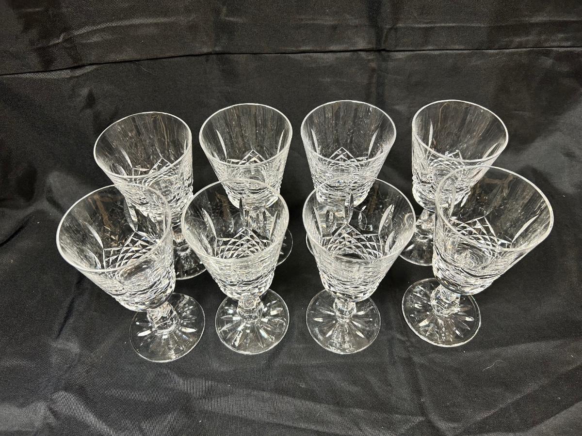 Vintage Waterford Crystal Colleen Pattern Small Wine Water Goblet Stemware Drink Glasses Set of 8. In very good condition, no chips found on pieces. About 6" size. All pieces marked.