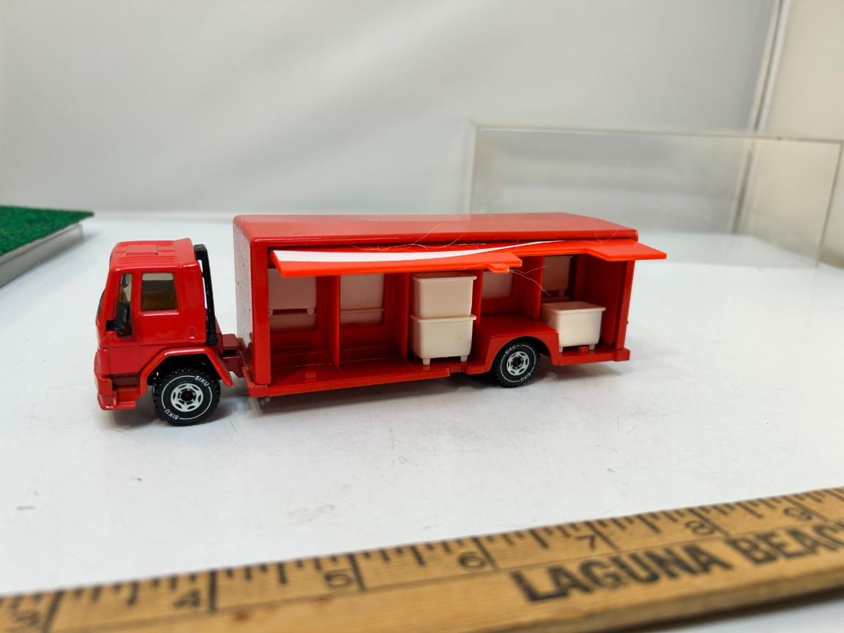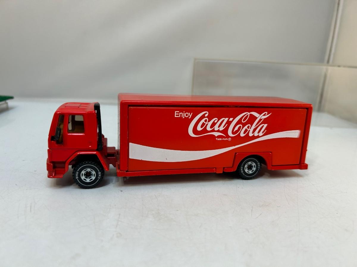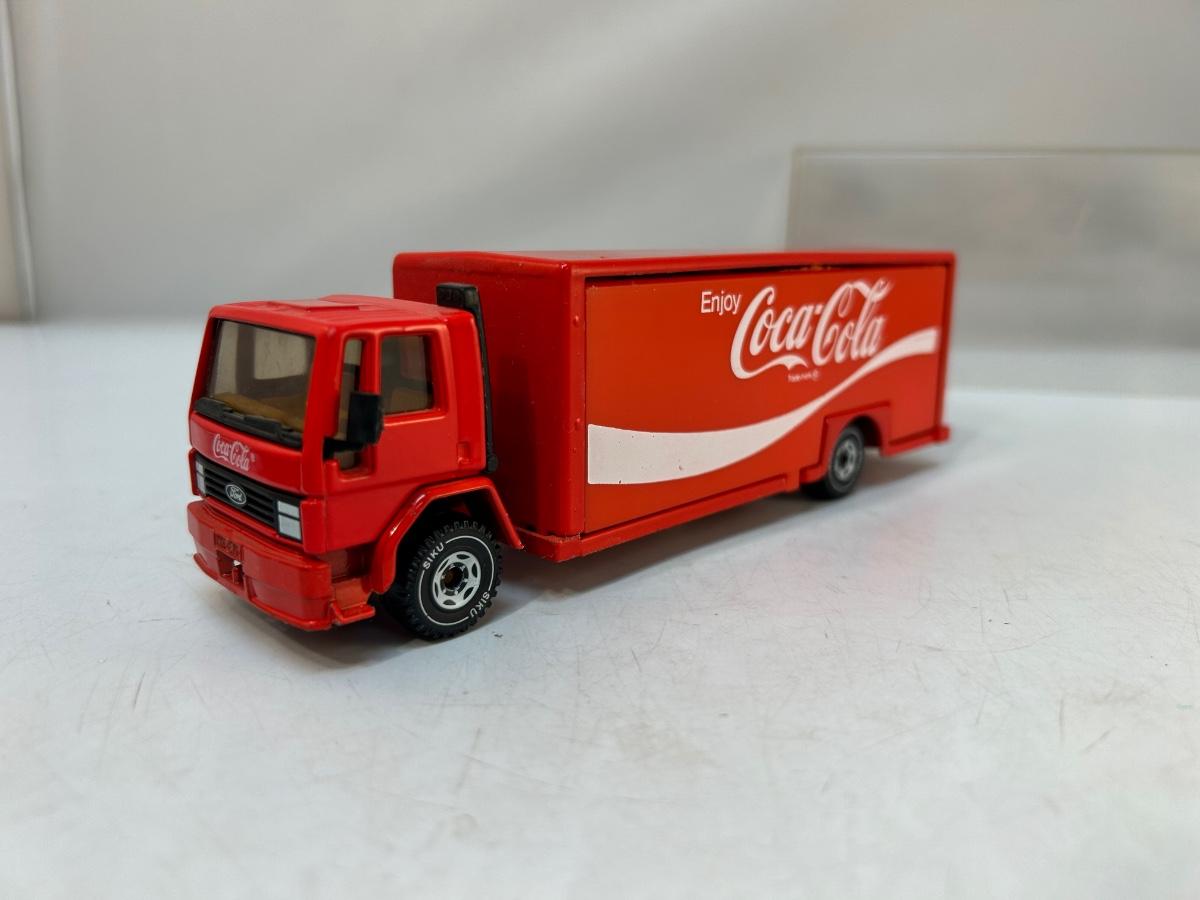 Die Cast Scale Model Coca Cola Delivery Truck with Opening Sides Bins & Hand Truck. In good condition. Comes with a plastic display case. About 8" size.