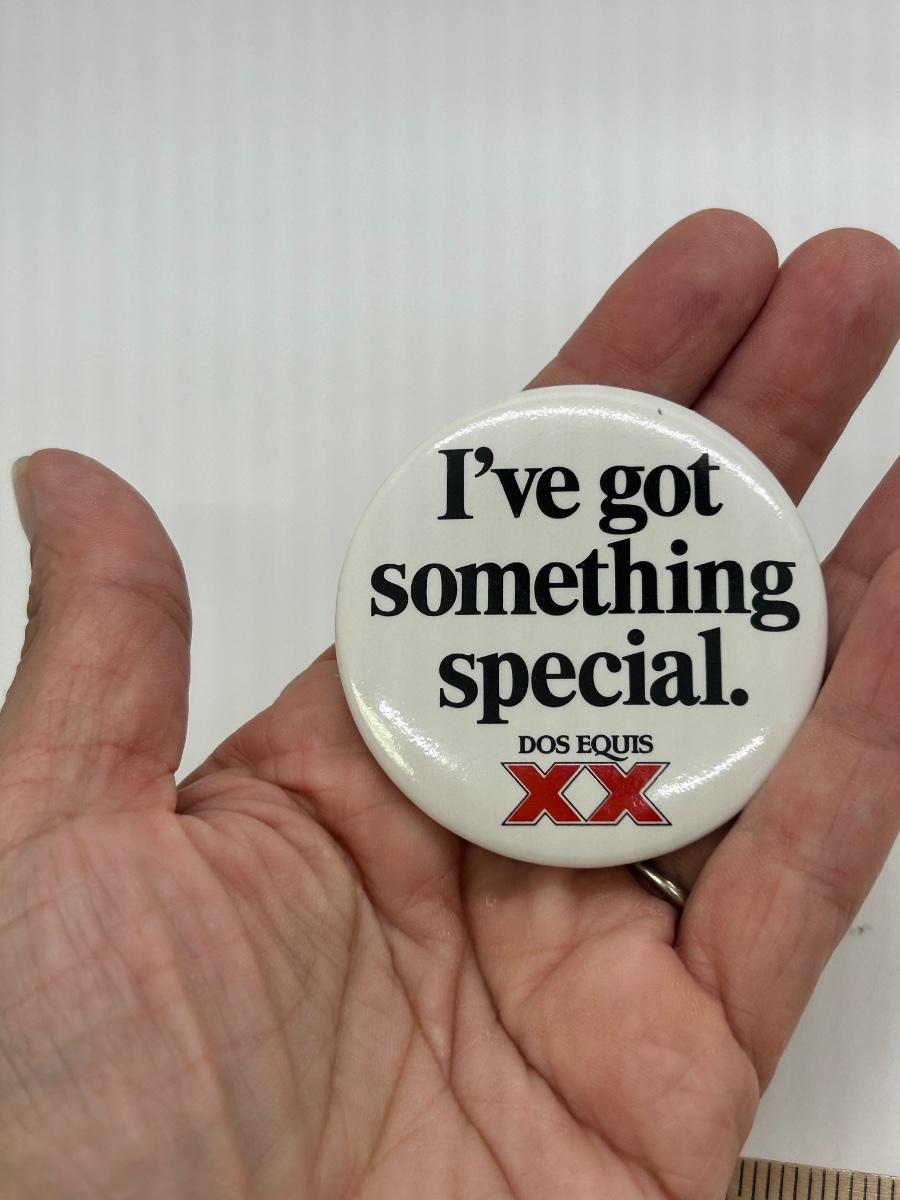 Dos Equis XX I've Got Something Special Pin Button. Two-inch size. Good condition.