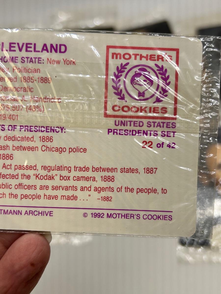 Mixed Lot of Unopened Presidential Trading Cards from Mother's Cookies. Individually wrapped cards. From the early 1990s.