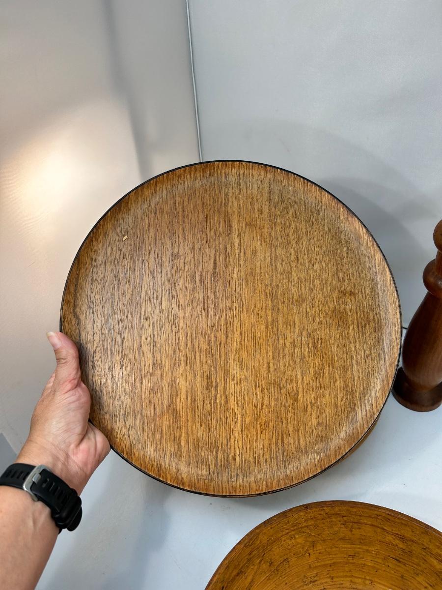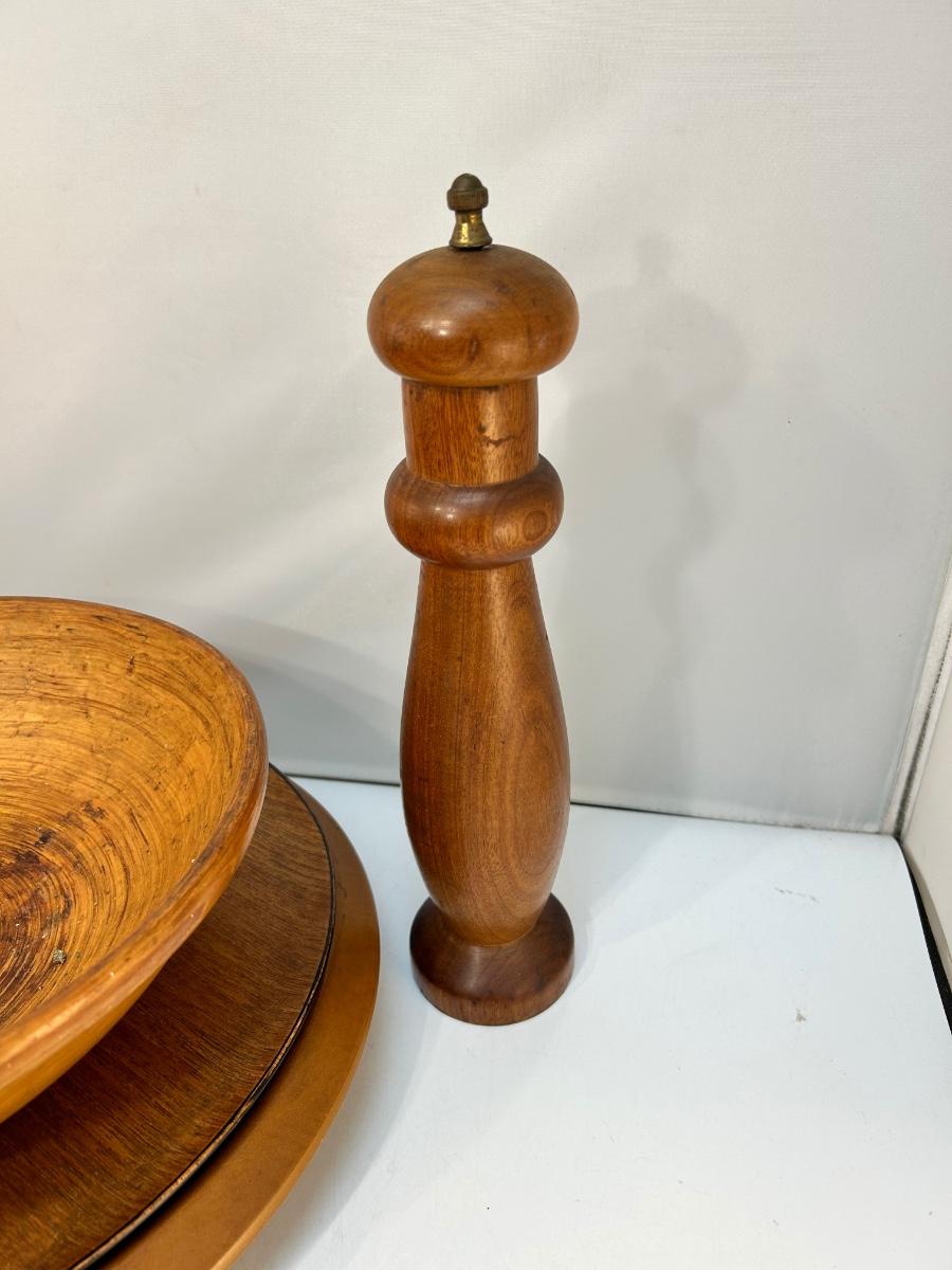 Vintage Wood Table Decor Bowl Lazy Susan Pepper Grinder