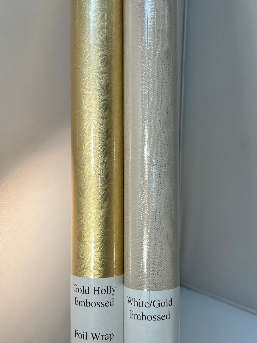 Two Rolls Of Gold Embossed Foil Wrap Gift Wrapping Paper