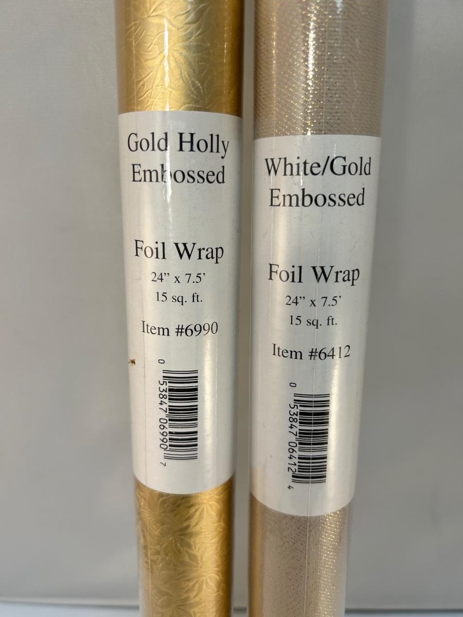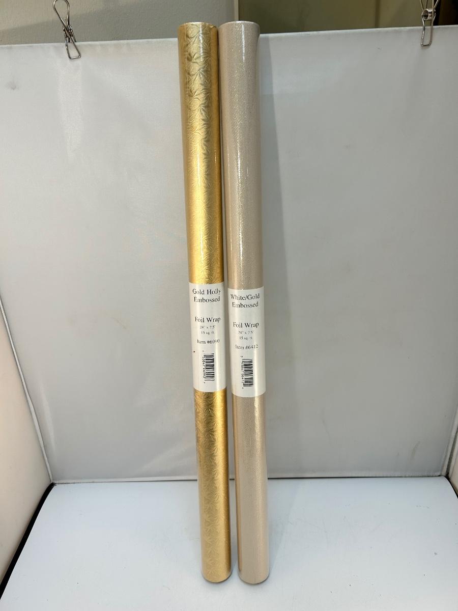 Two Rolls Of Gold Embossed Foil Wrap Gift Wrapping Paper. Unopened.