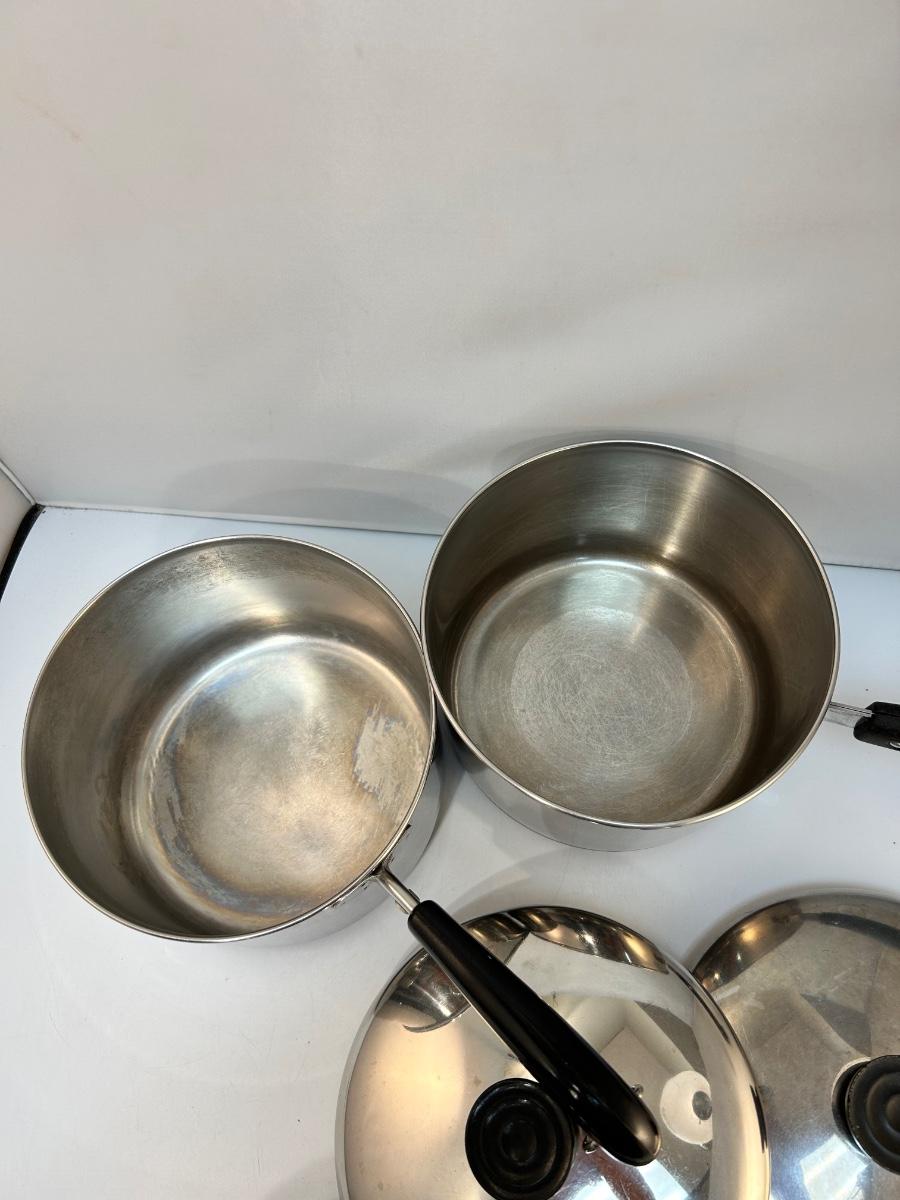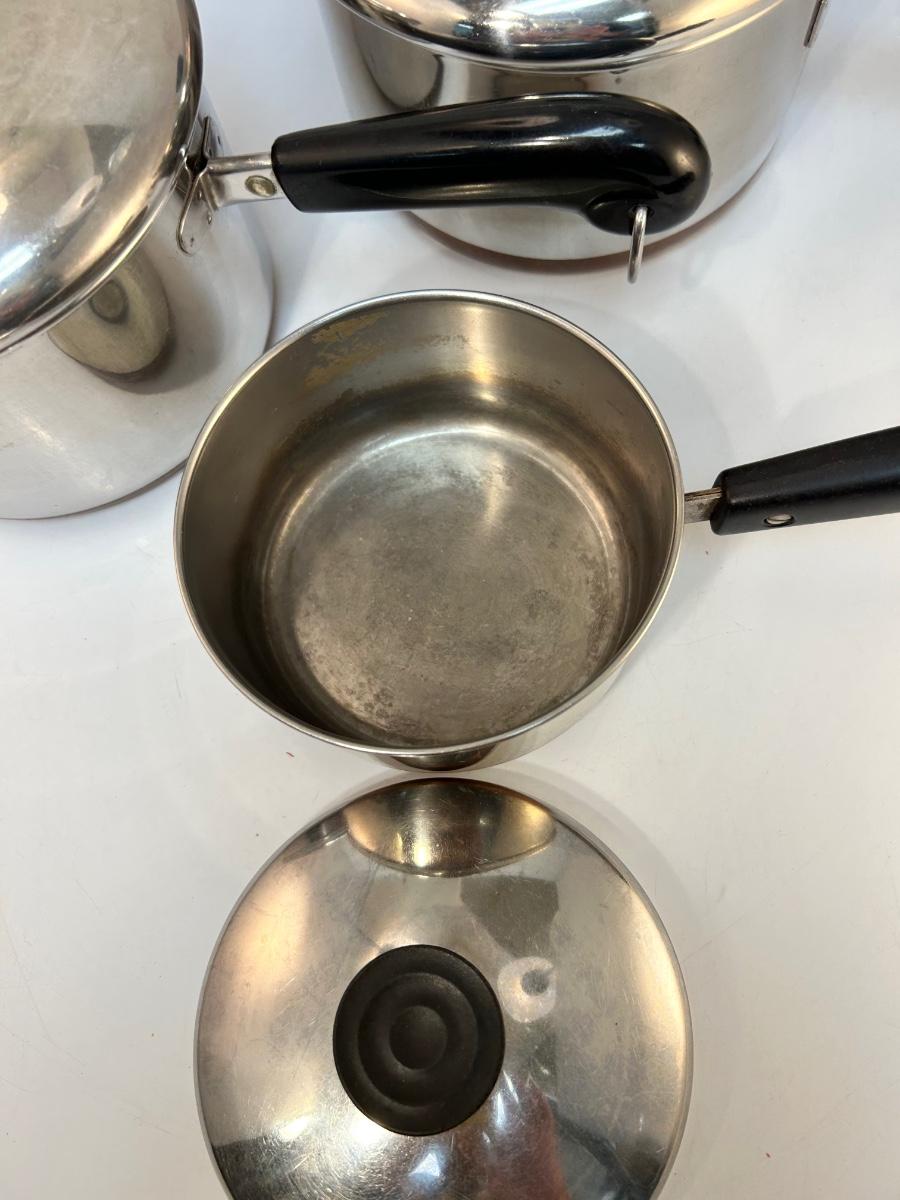 Set of Three Revere Ware Stainless Steel Saucepans Pots with Lids