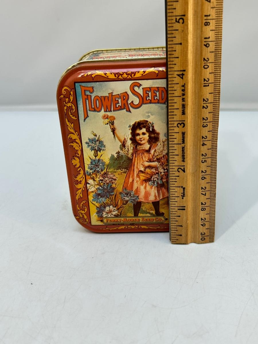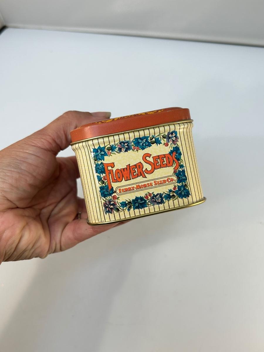 Vintage Style Flower Seeds Tin Metal Box Canister Ferry Morse Seed Co.