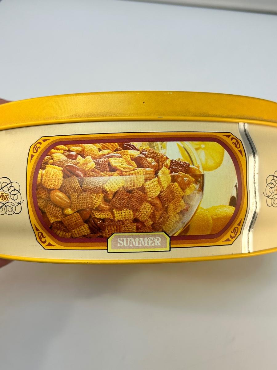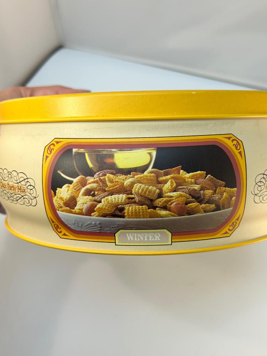 Retro Four Seasons Chex Mix Tin Canister with Recipe