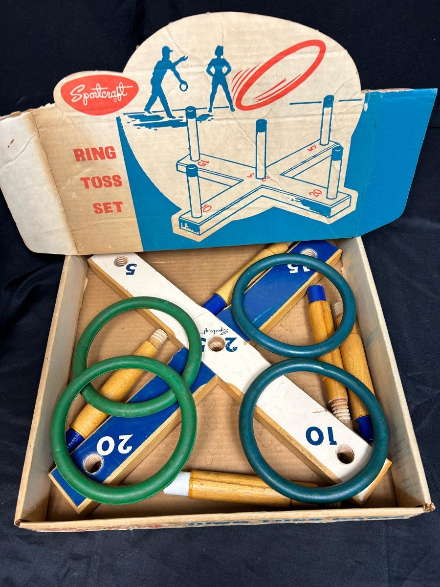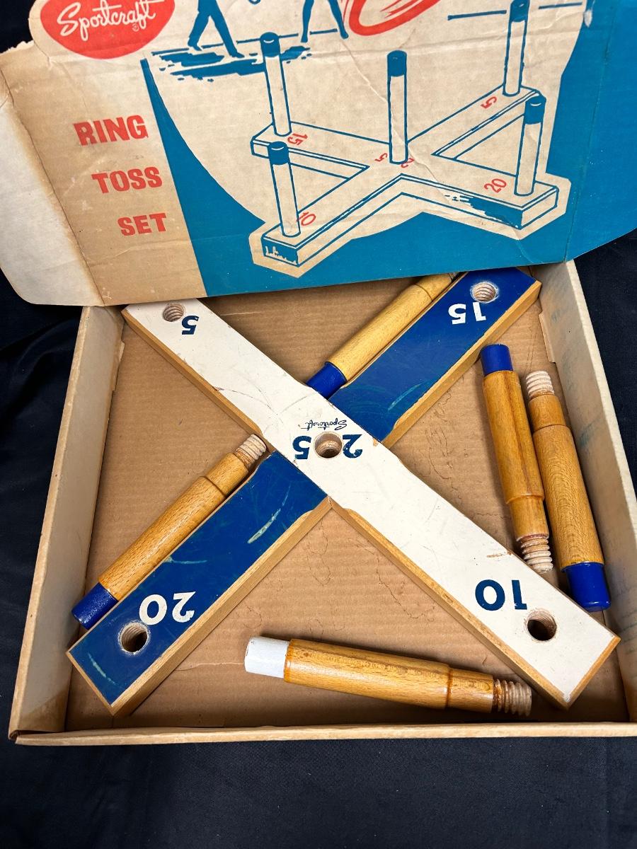 Vintage Sportcraft Ring Toss Game Complete with Box. In good used vintage condition.