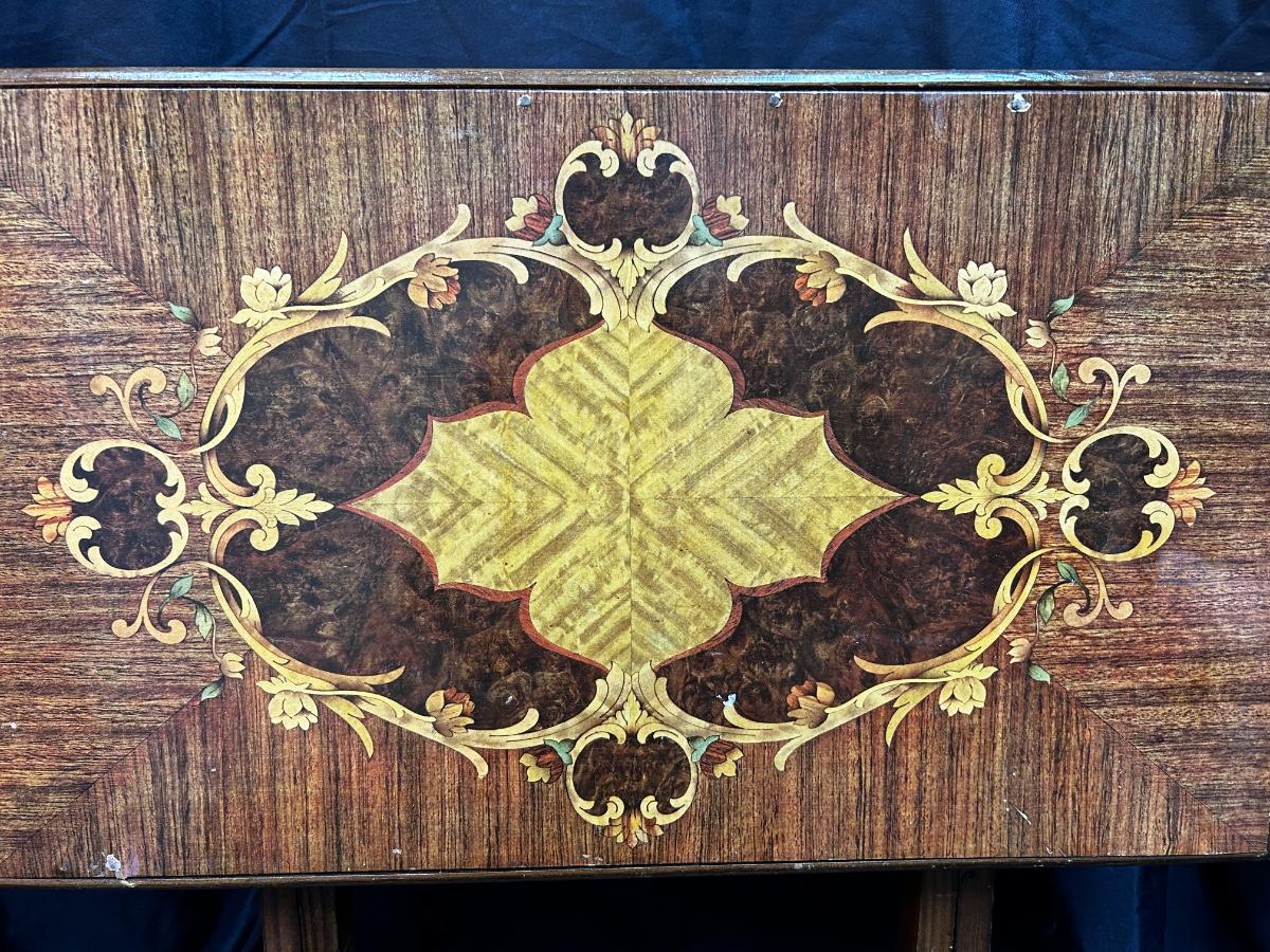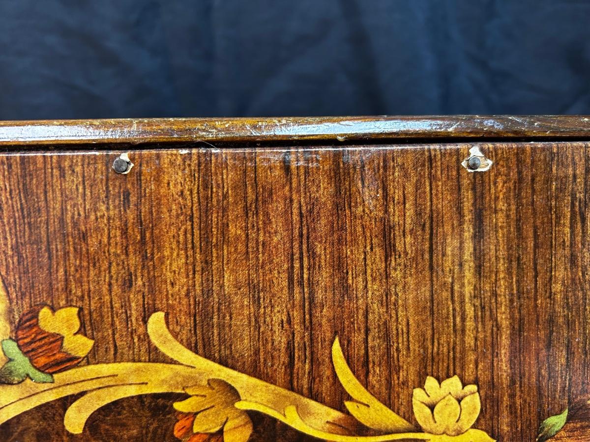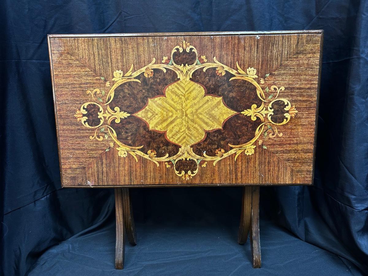 Vintage Retro Veneered Wood TV Tray Folding Table. In previously used condition. The veneer was peeling so previous owner added some tack nails to keep in place, see photos.