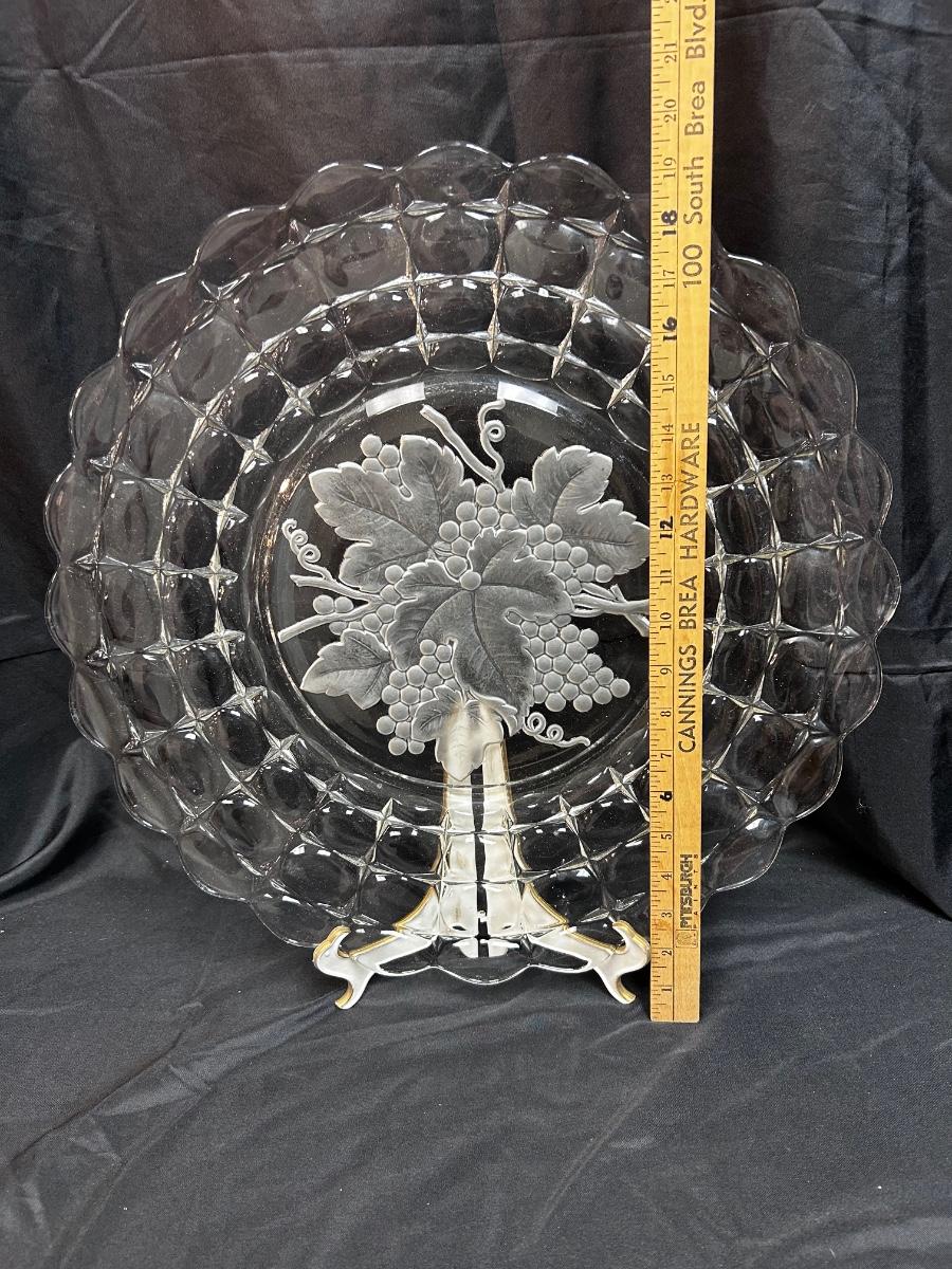 Extra Large Scallop Edge Serving Platter Frosted Grapes Center. In very good condition. About 18" diameter.