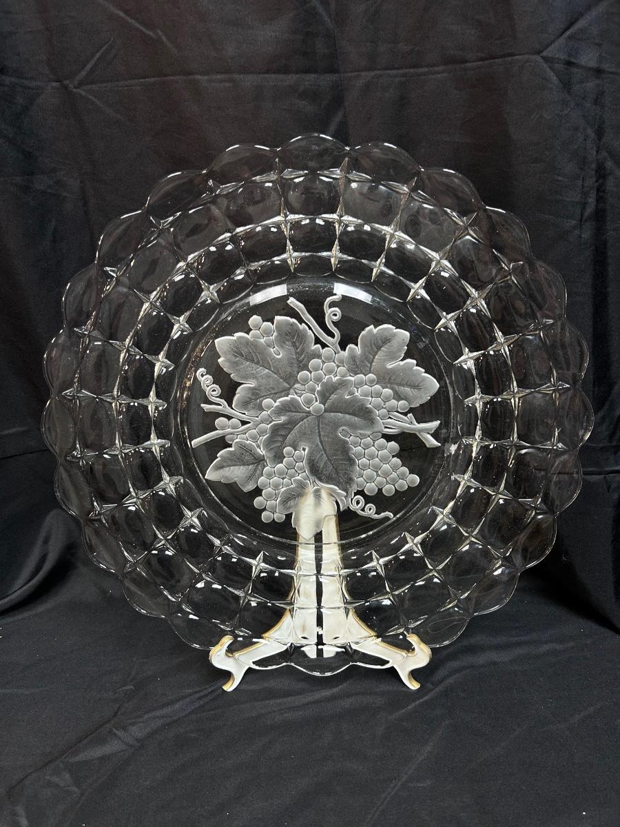 Extra Large Scallop Edge Serving Platter Frosted Grapes Center