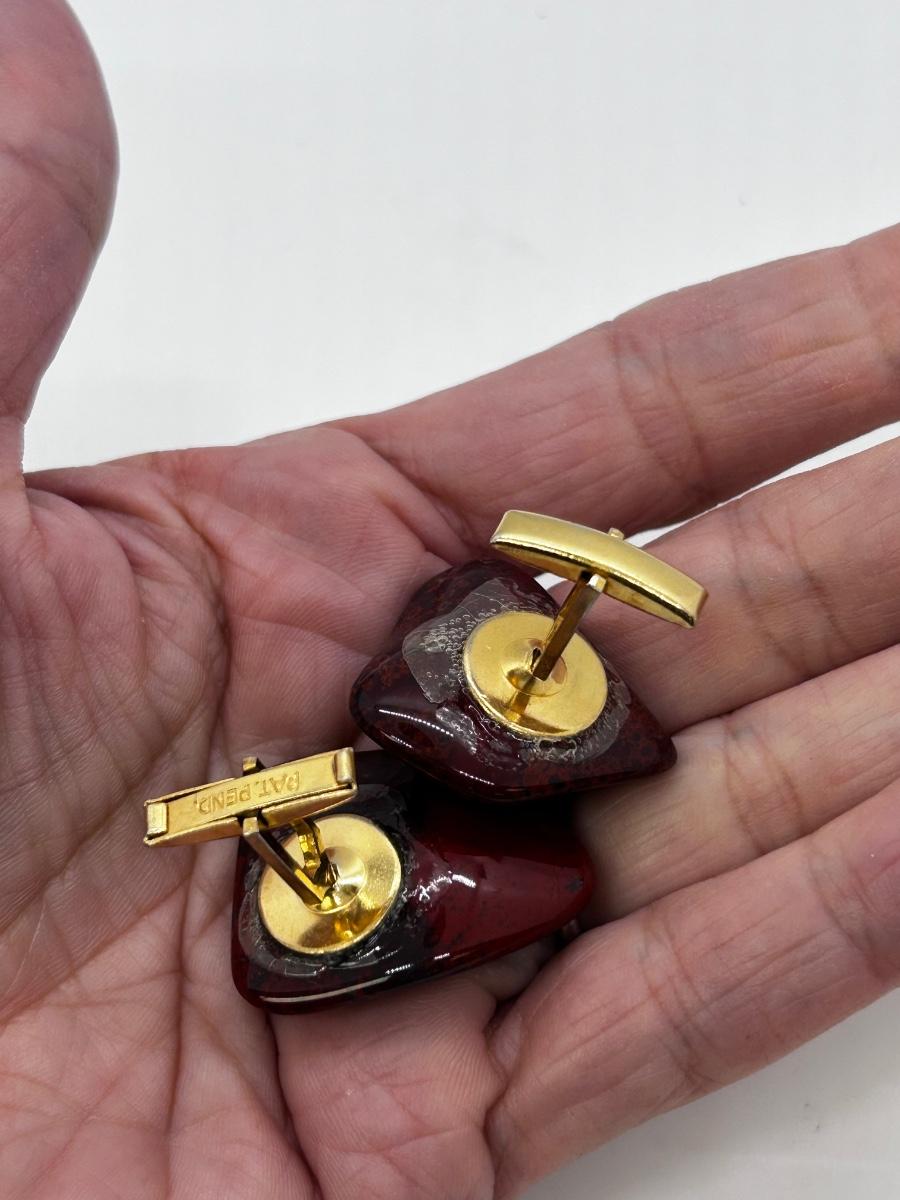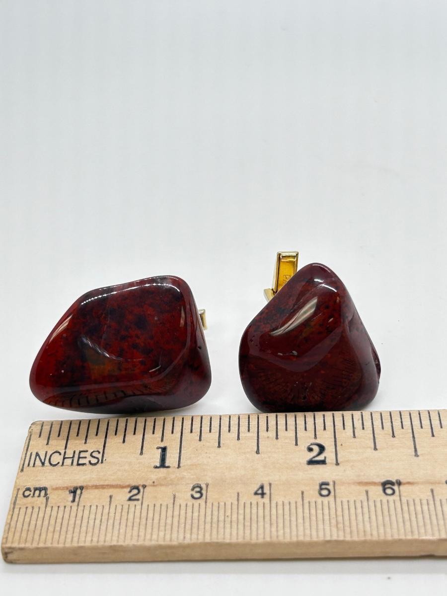 Vintage Polished Rock Red Bloodstone Agate Cufflinks. In good condition. Stones are about 1" size.