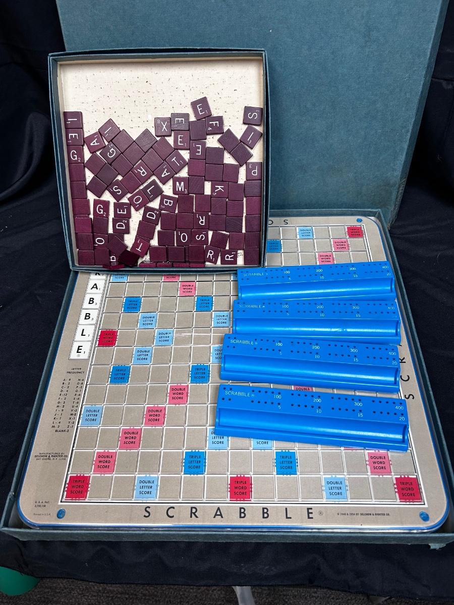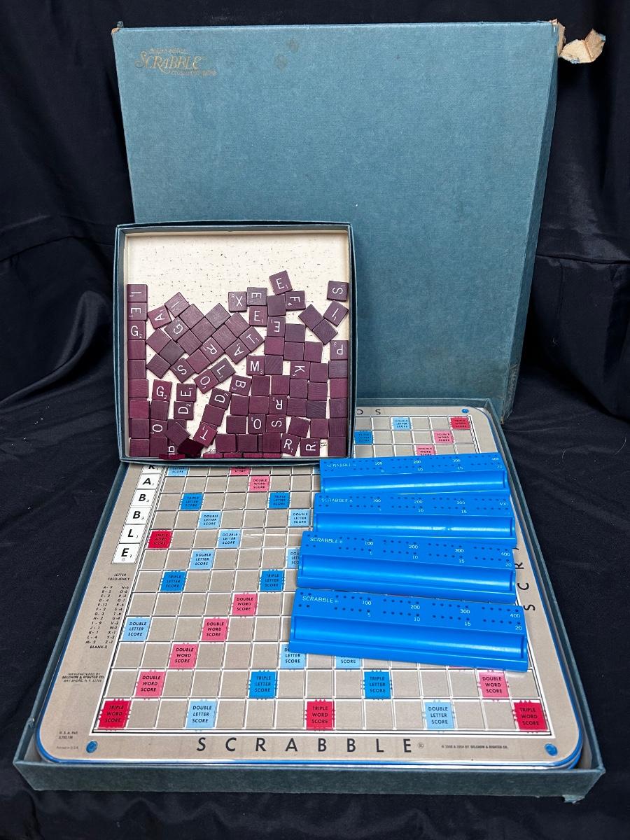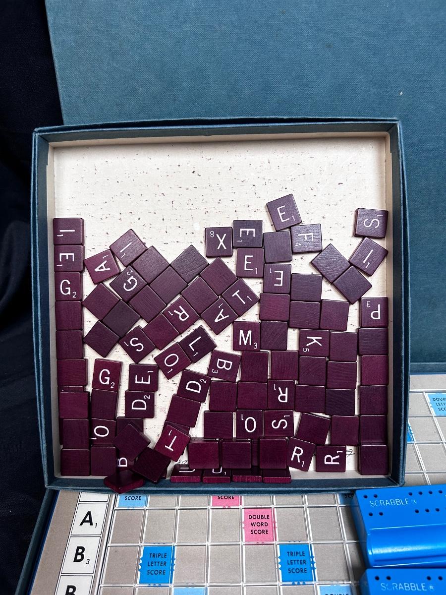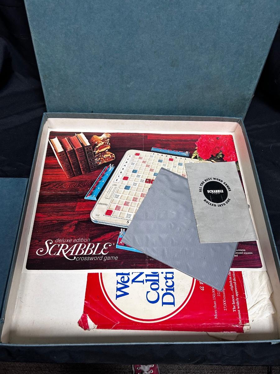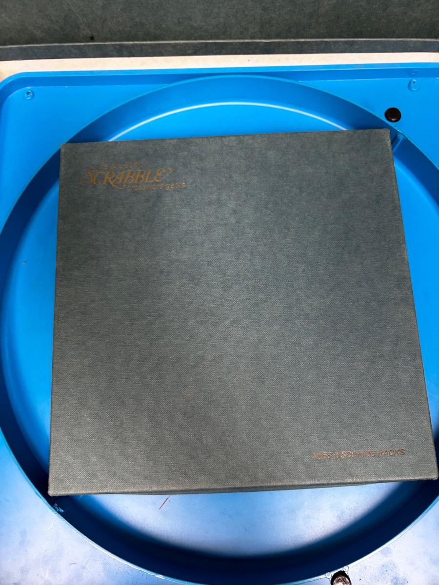Deluxe Scrabble Crossword Game with Lazy Susan Board. In good condition. Looks complete, did not count tiles.