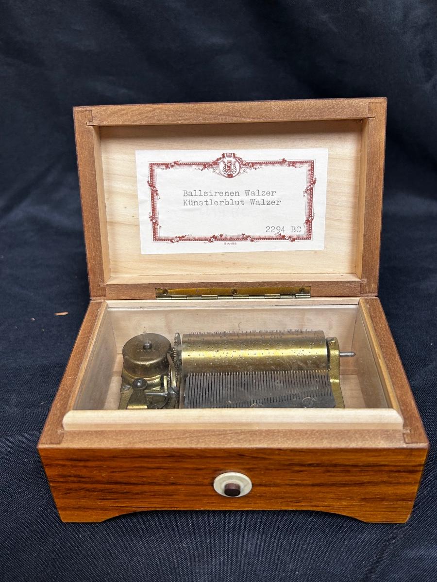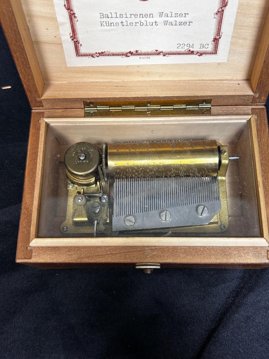 Vintage Wind Up Wood Music Box. Works. You can see the mechanisms moving when box is open.