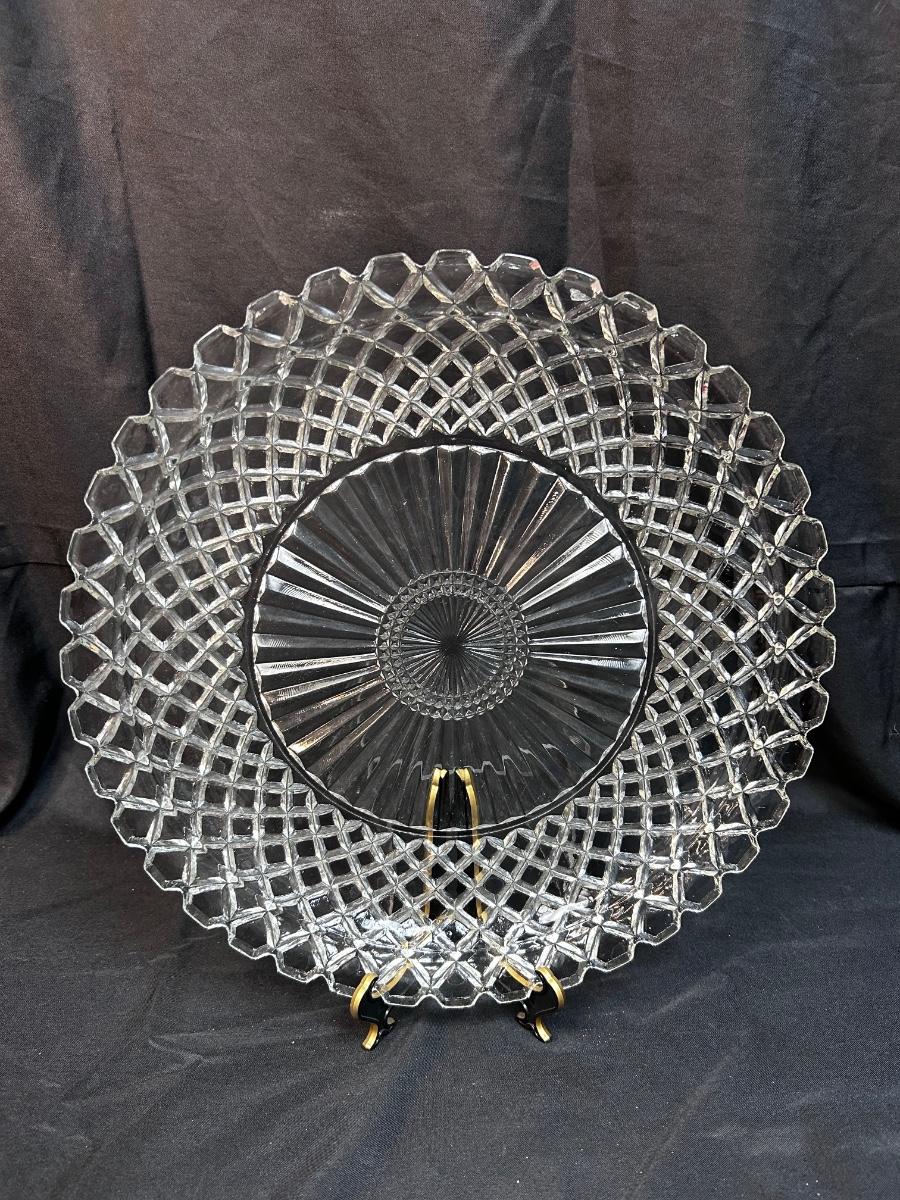 Large Diamond Lattice Cut Glass Platter Serving Plate