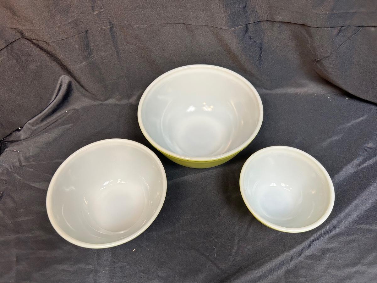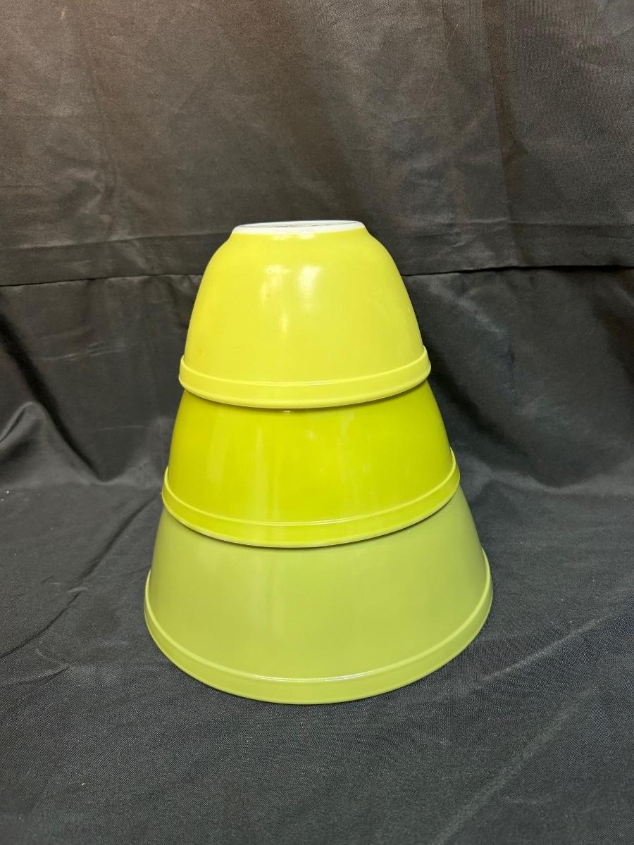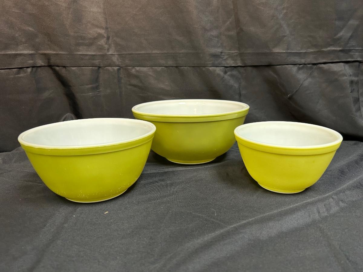 Vintage Pyrex Avocado Green Three Nesting Mixing Bowls #401 #402 #403