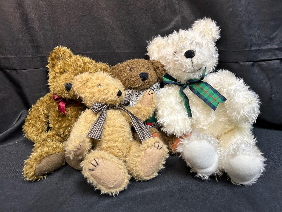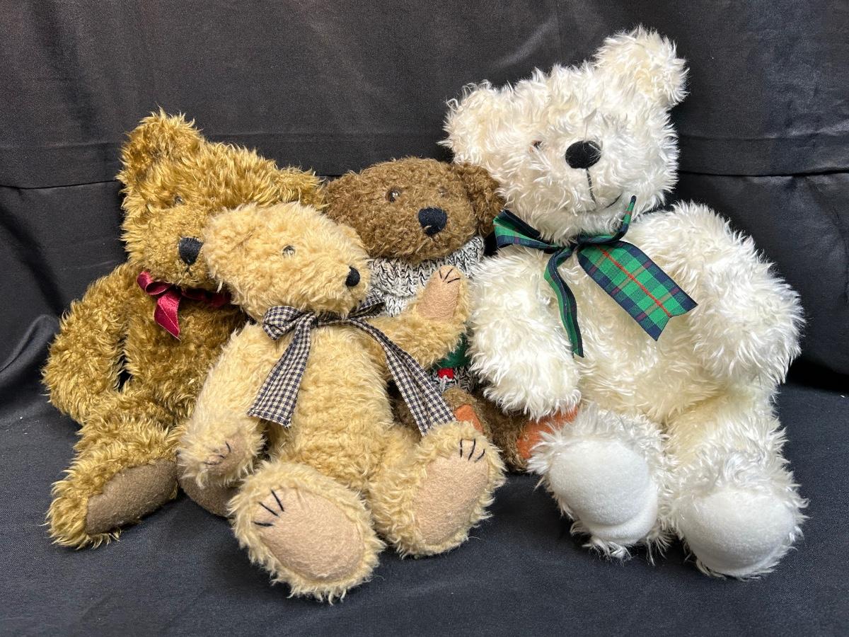 Lot of Four Fuzzy Teddy Bear Plush Stuffed Animal Dolls