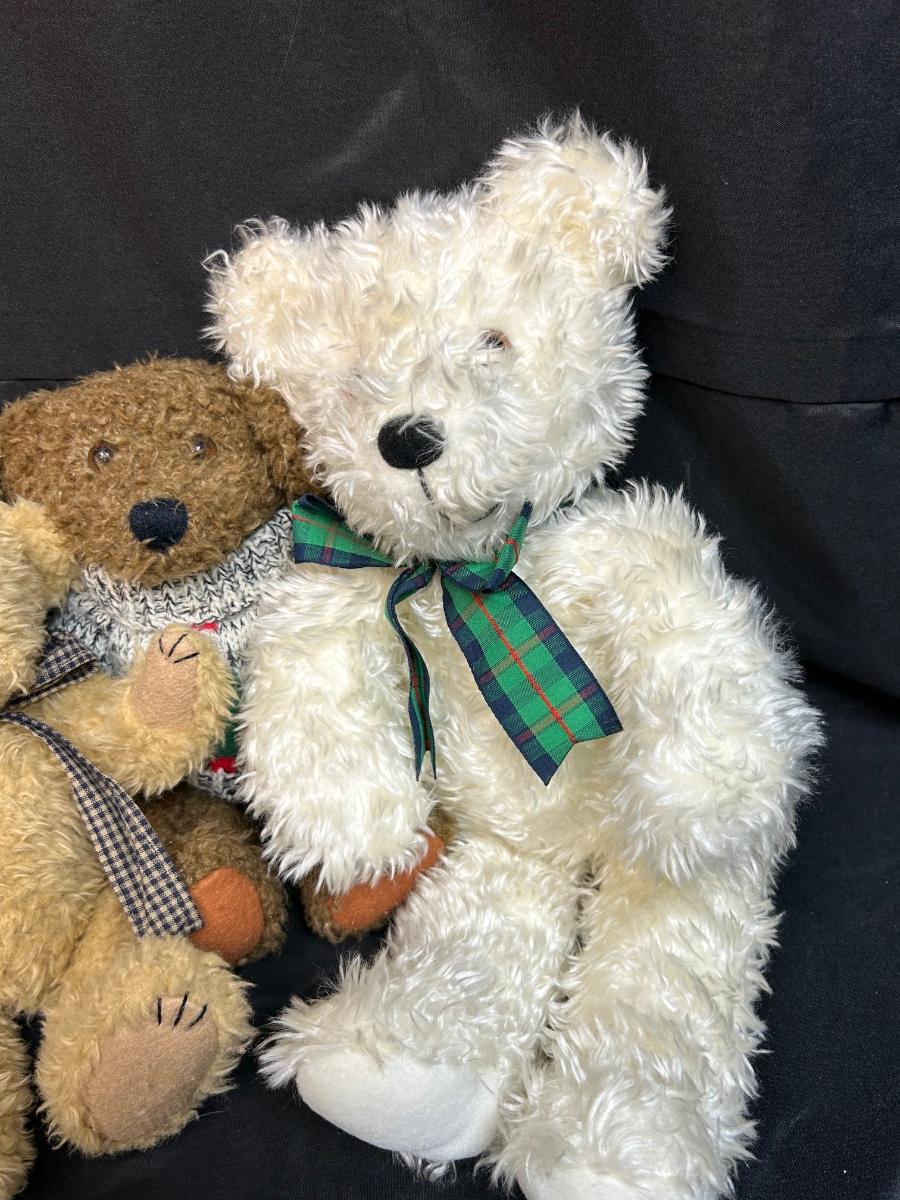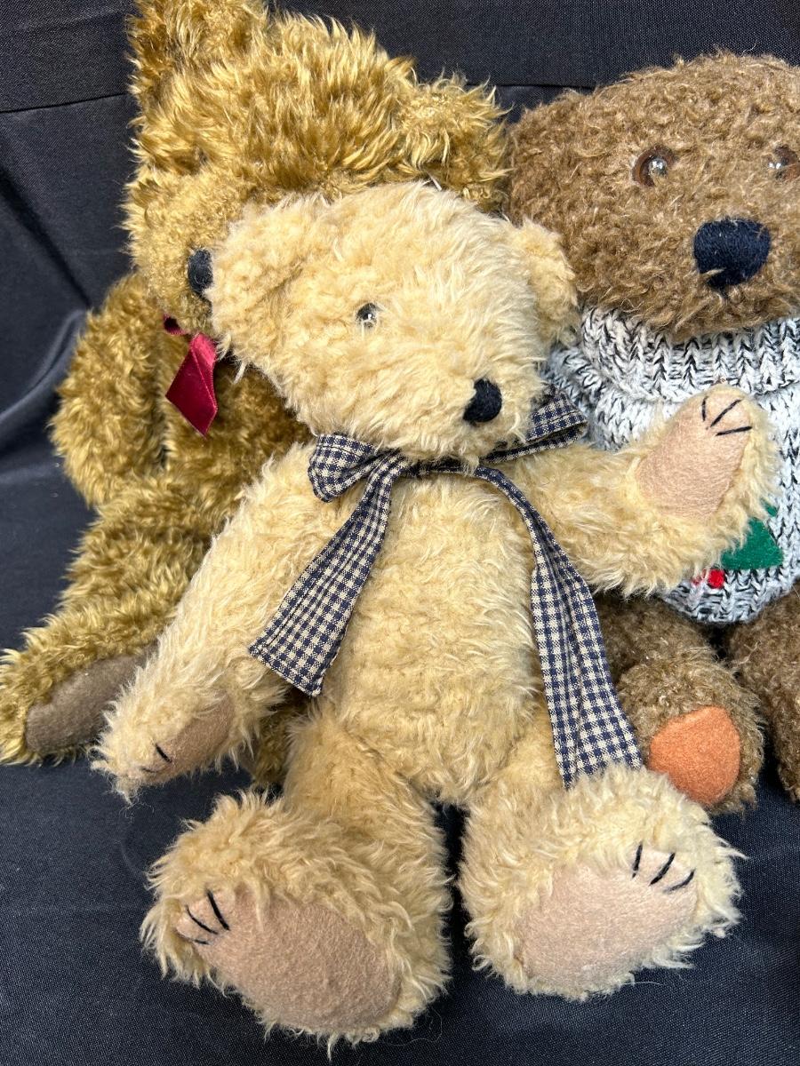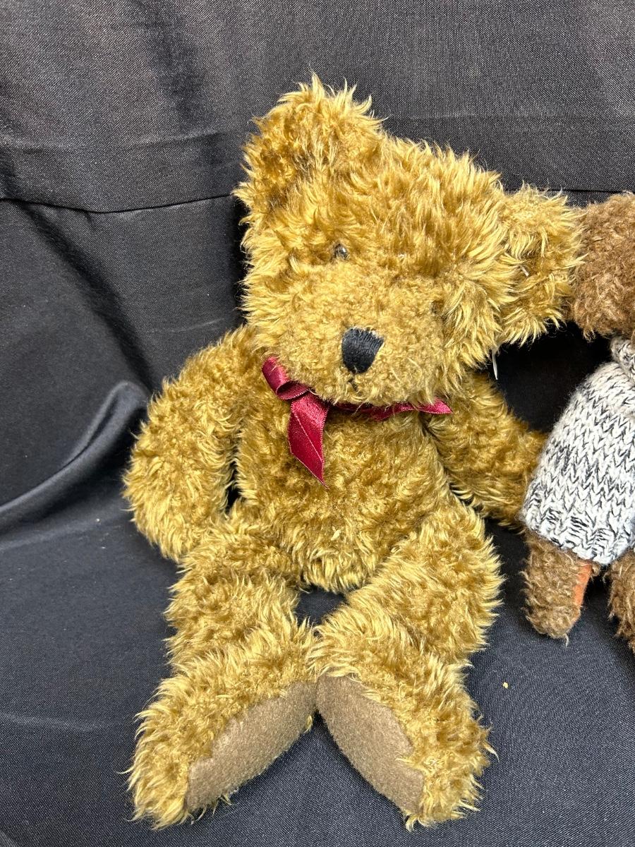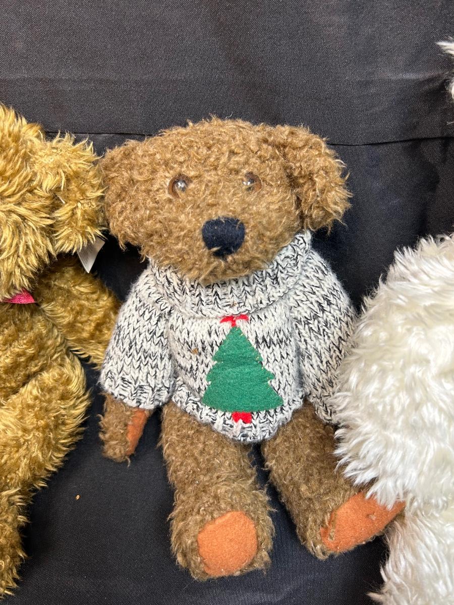 Lot of Four Fuzzy Teddy Bear Plush Stuffed Animal Dolls. In good condition. A couple have jointed limbs for posing. Under 12" size.