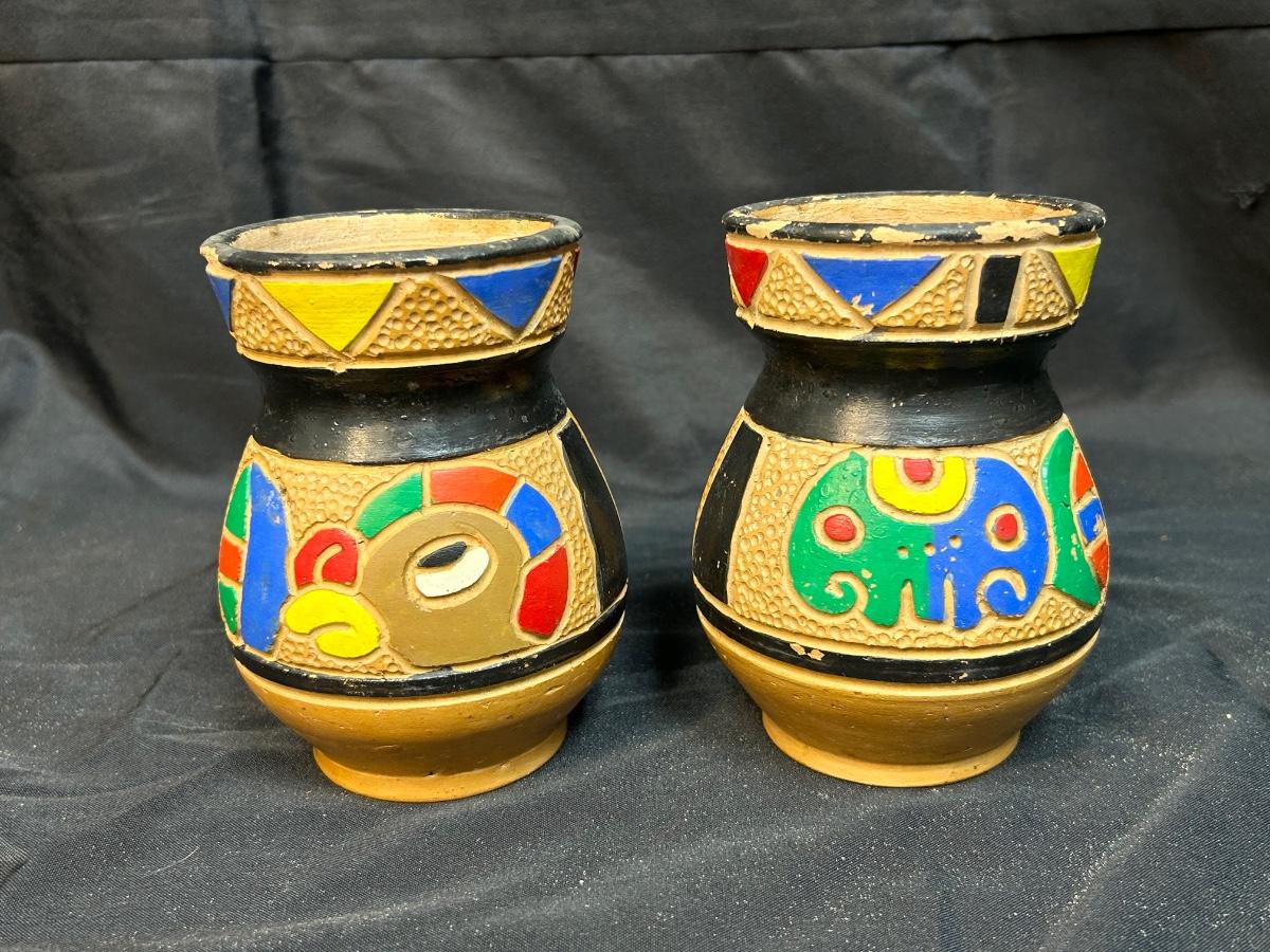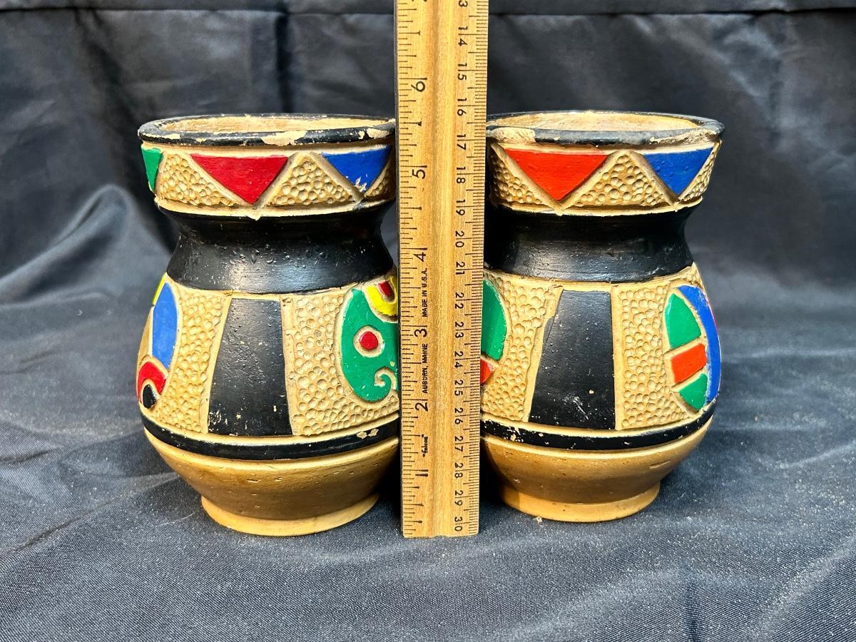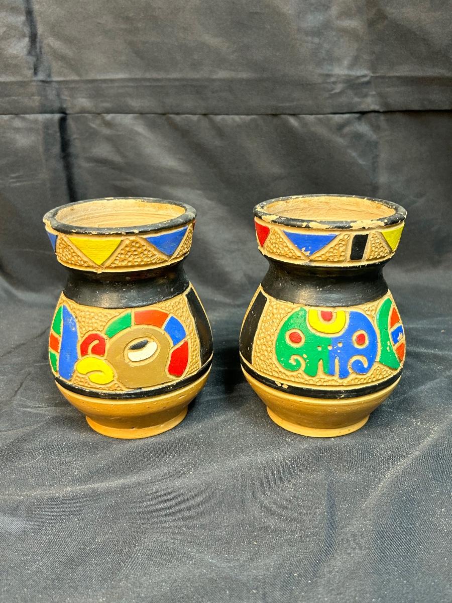 Vintage Retro Handmade Thrown Pottery Vases Urns Primary Color Paint