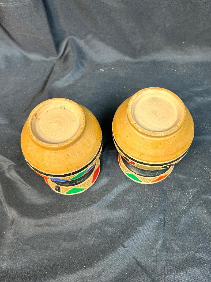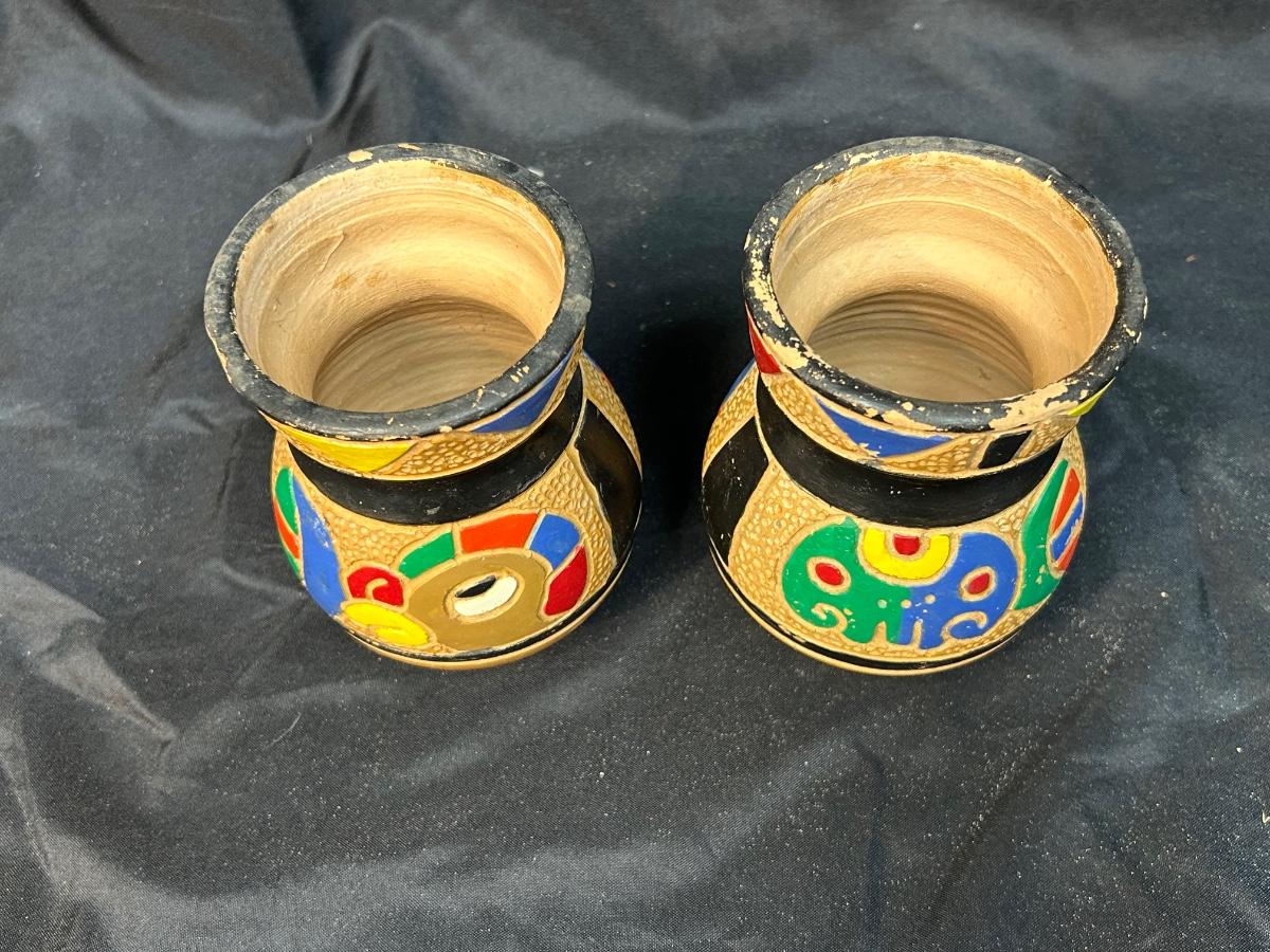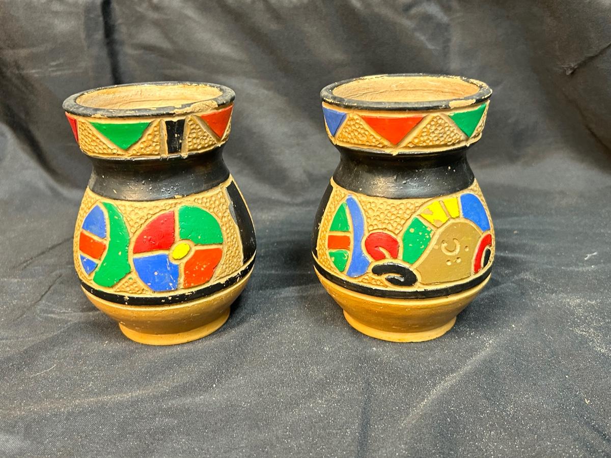 Vintage Retro Handmade Thrown Pottery Vases Urns Primary Color Paint